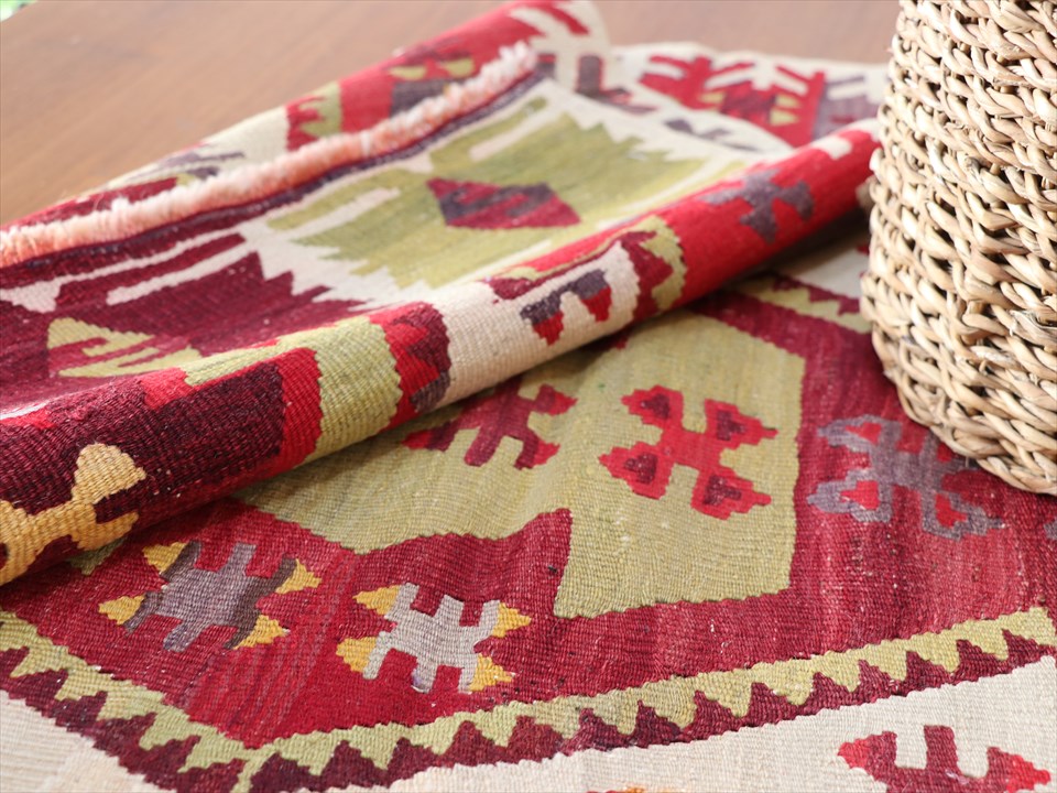 - オールドキリム・シワス チェイレキ129×83cm エリベリンデ レッド/グリーン