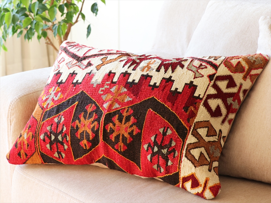 - オールドキリムクッション・長方形ビッグピロー Turkish Old Kilim Cushion60×40cm カイセリ