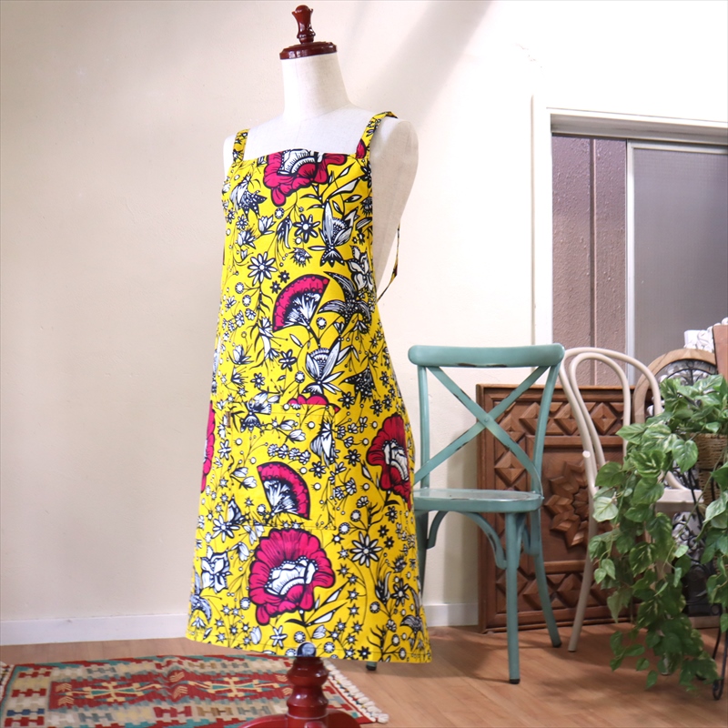 - パーニュ アフリカンプリント エプロン イエロー 【メール便送料無料】