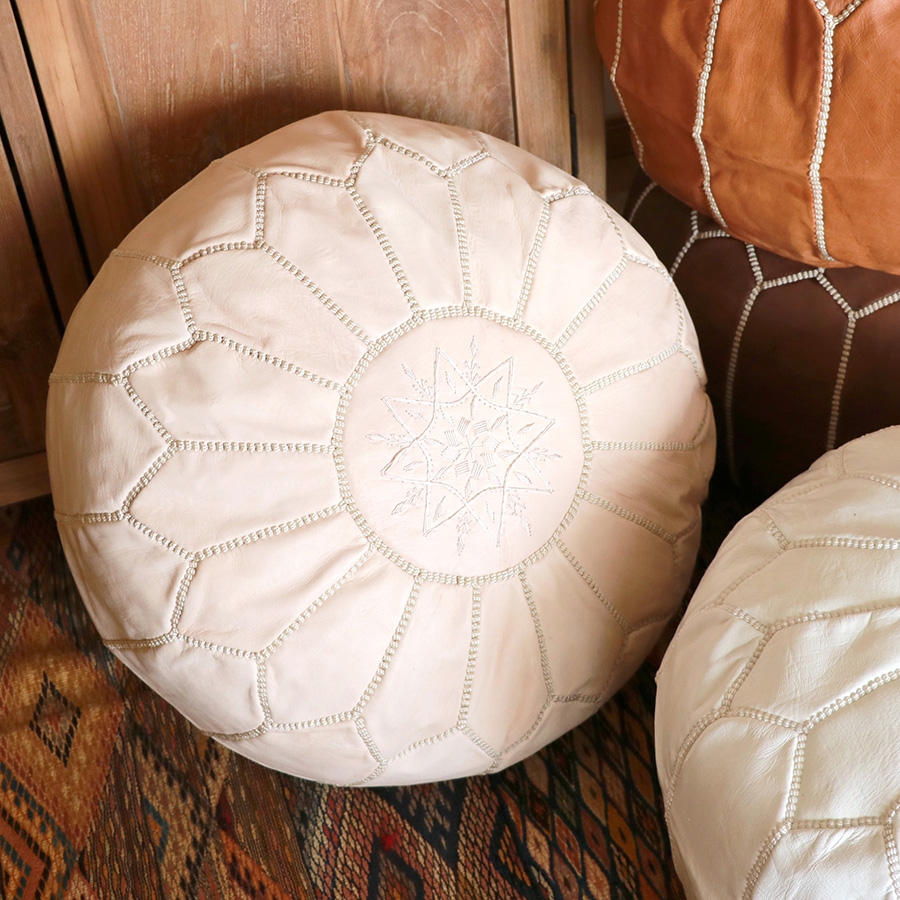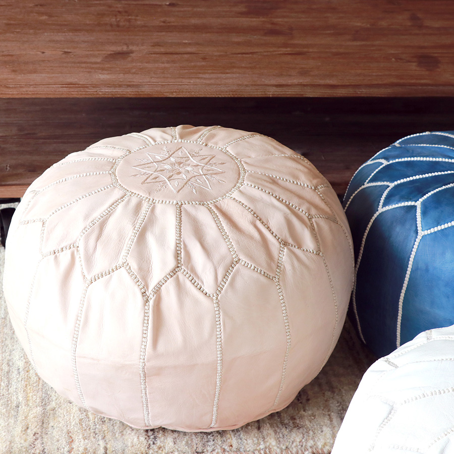 Moroccan POUF light beige モロッコ・プフφ50cm ヤギ革ヌメ・ナチュラル 中材付・オットマンスツール