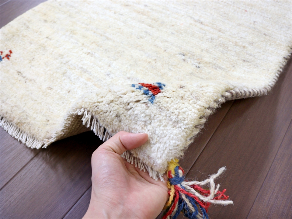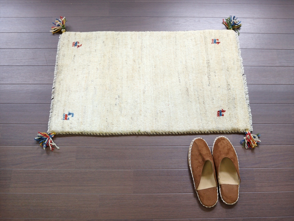 Key:ギャッベ, イラン, シラーズ, 手織り, 一点もの, 厚手, 草木染, 玄関マット, 無地, シンプル, アイボリー, ベージュ, 白
