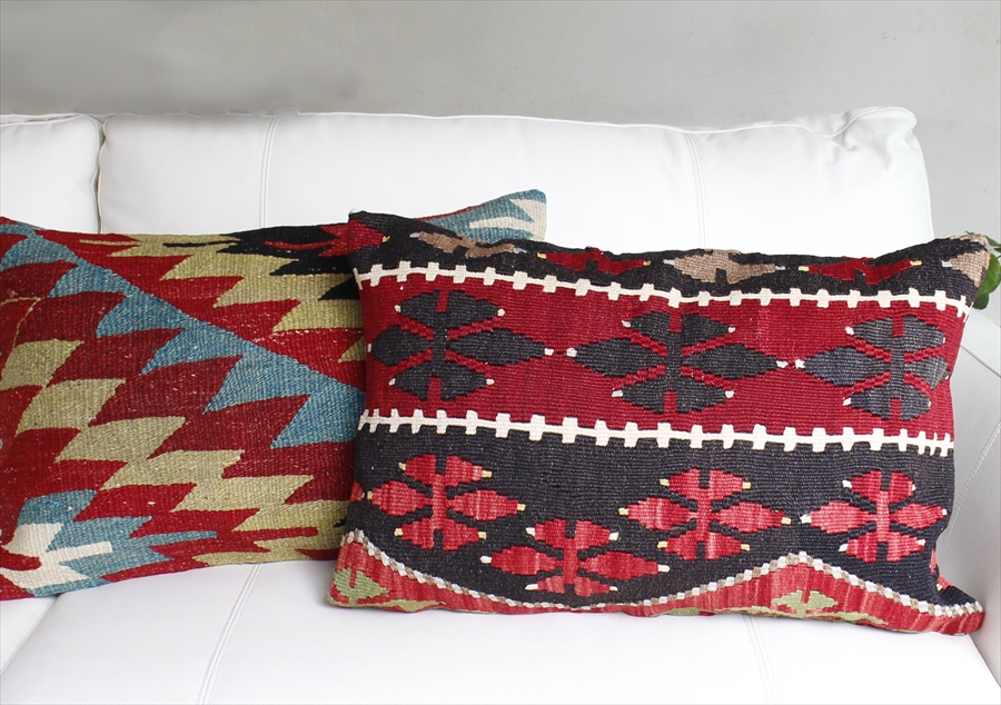 - オールドキリムクッション・長方形ビッグピロー Turkish Old Kilim Cushion 59x40cm/カイセリ(Kayseri)