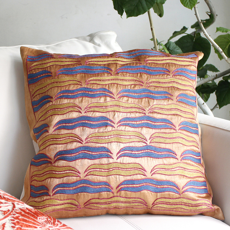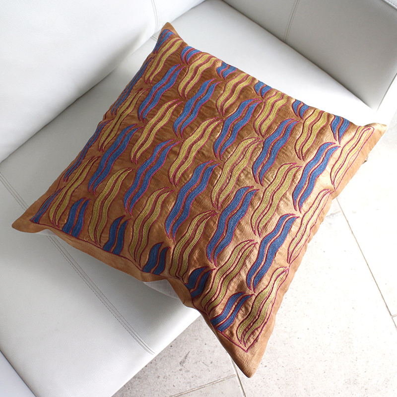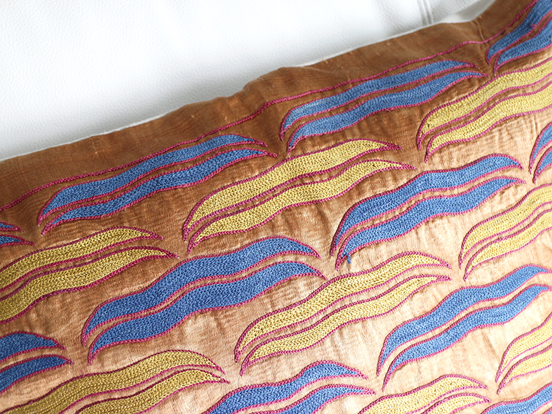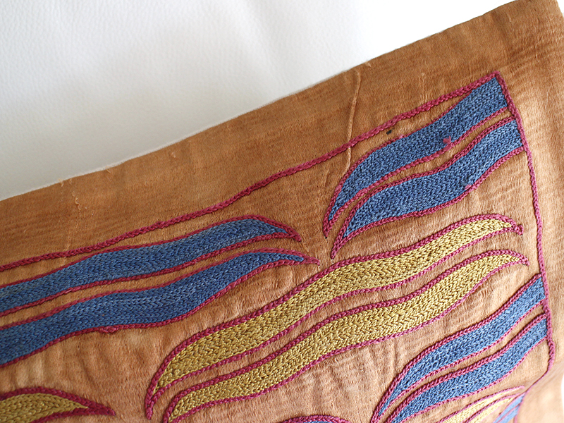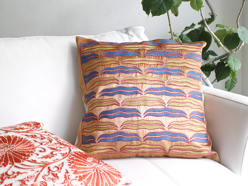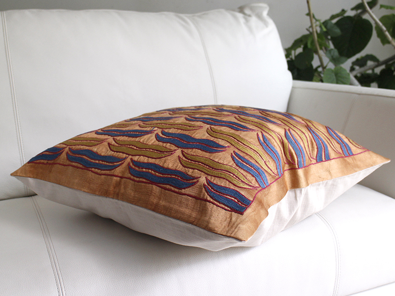 ウズベキスタンの伝統の手刺繍布・スザンニをクッションカバーに仕立てました。緻密なニードルワークによるチェーンステッチの手刺繍が見事。ひとつお部屋にあるだけで、お部屋が華やぐクッションです。