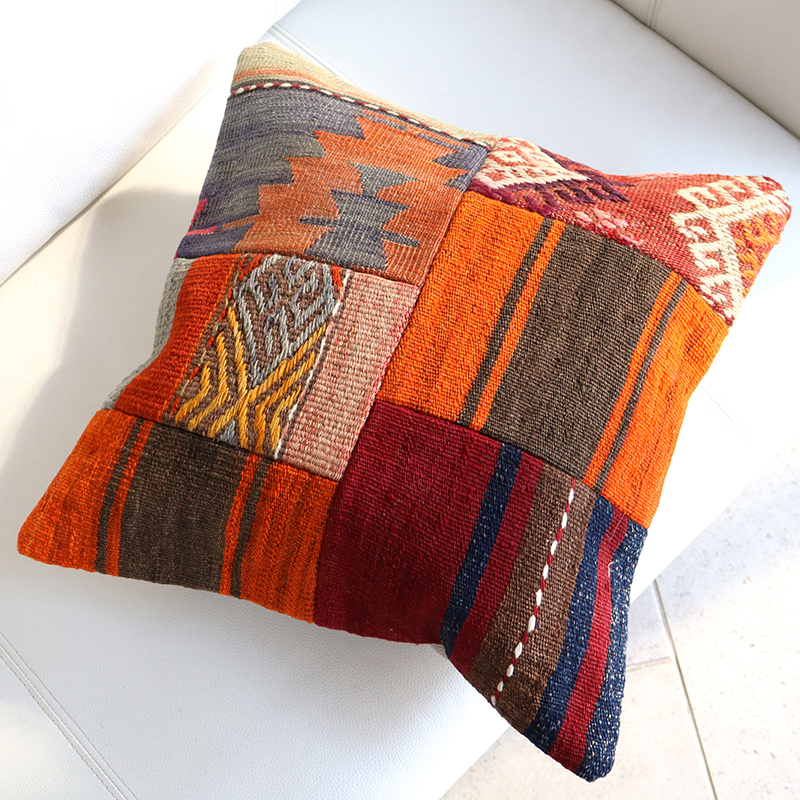 オールドキリムクッションカバー 40cm /Old Kilim Cushion パッチワーク トルコのウール手織りキリム