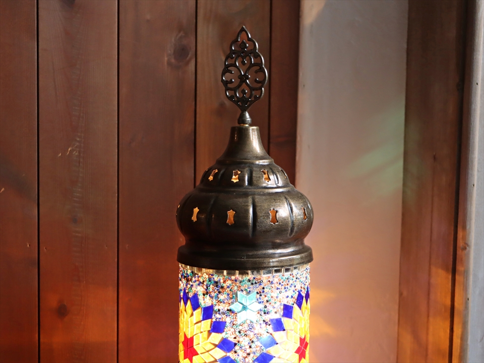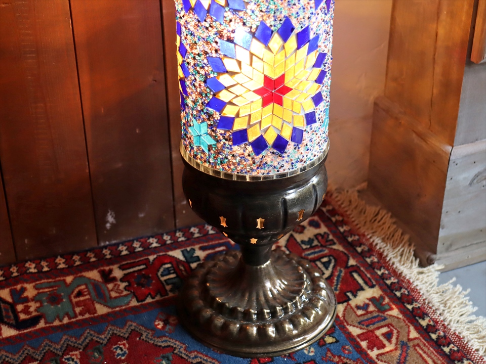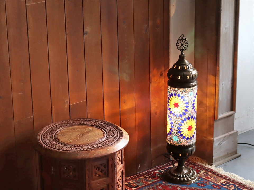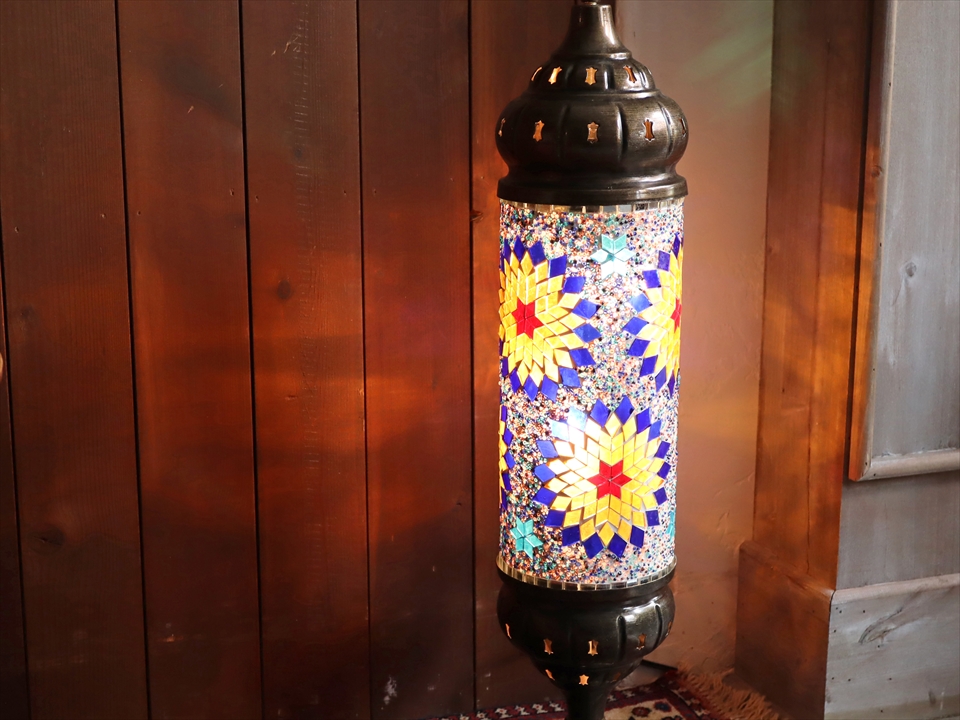 エキゾチックな光が楽しめるトルコ製モザイクガラスのスタンドランプ。