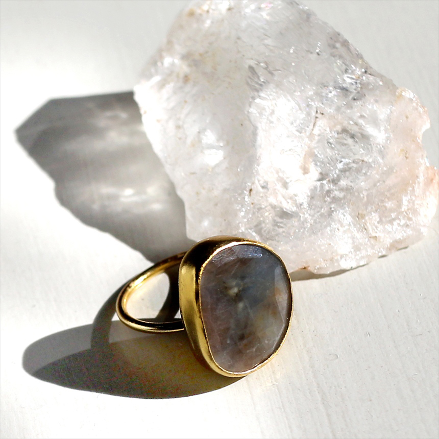 ナチュラルサファイア ラフカットリング ブルーグレー アルサメイア 天然石22KGP トルコジュエリー