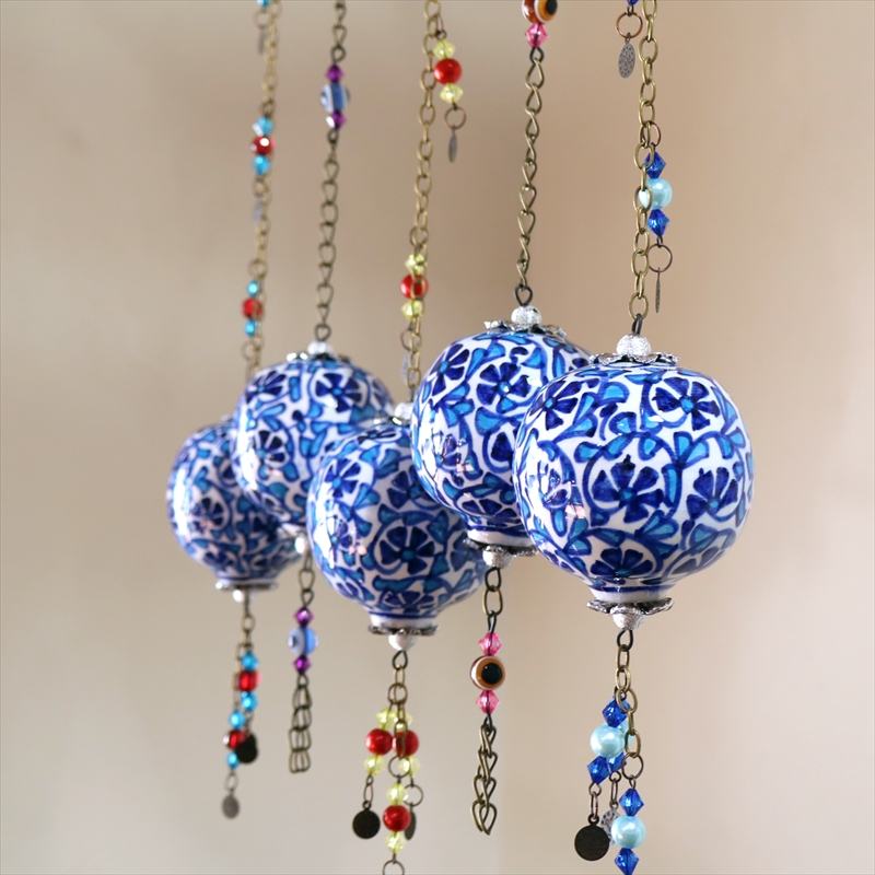 トルコでは、魔よけのおまじないの意味で、この飾り玉をお部屋にいくつかつるして飾る習慣があります。