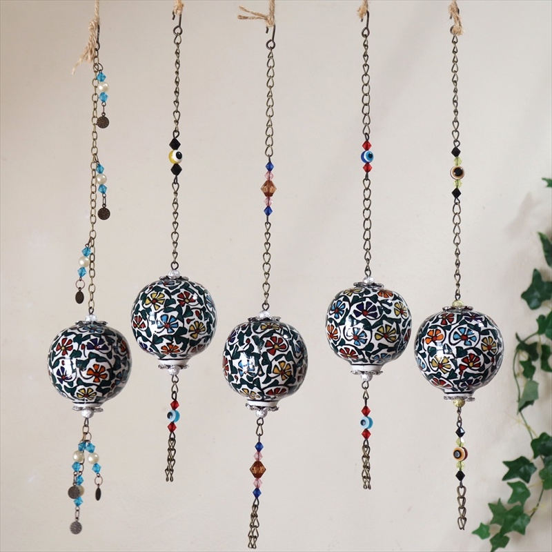 トルコでは、魔よけのおまじないの意味で、この飾り玉をお部屋にいくつかつるして飾る習慣があります。