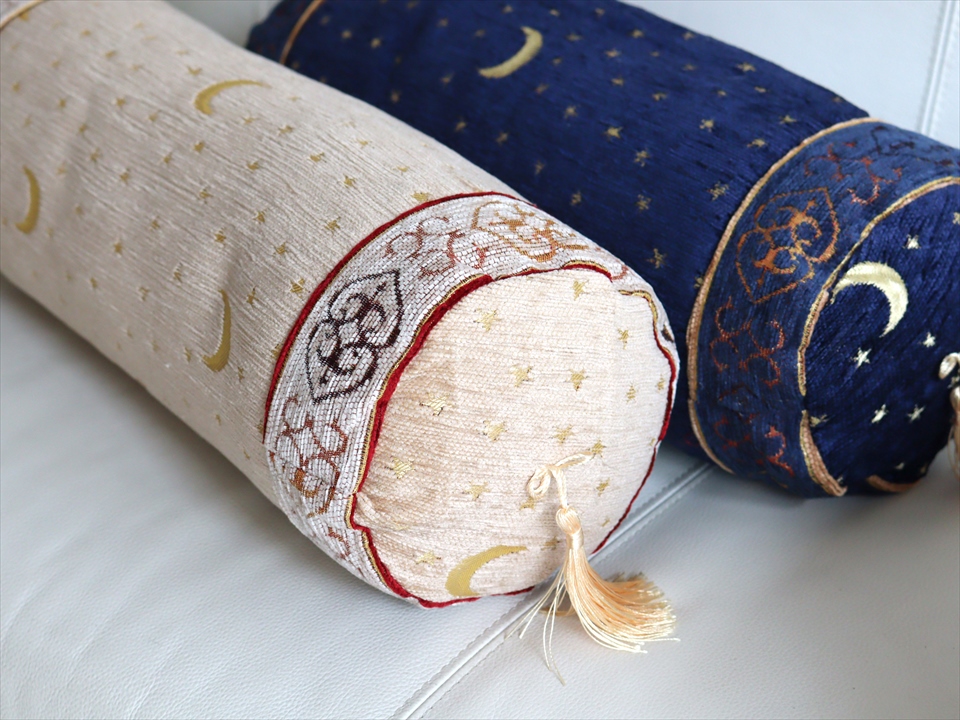 - 筒型のトルコシュニール素材クッションカバー 48xφ15cm スターリーナイト・シルキーベージュ
