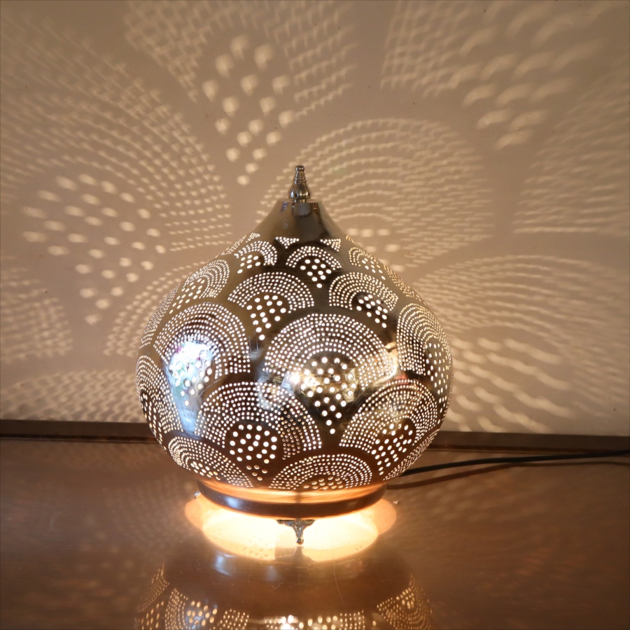 Key:モロッコランプ BOHO モロッコランタン メタルシェード ボヘミアンスタイル シルバー メタルランプ インダストリアル テーブルランプ テーブルライト 間接照明 室内照明 店舗照明 Morroco Lamp Egyptian lamp Egypt craftmanship