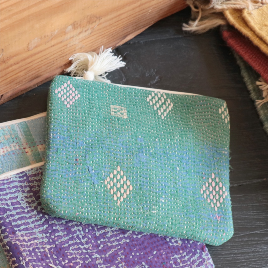 - カンタ刺繍 ミニポーチ フラットポーチ16.5×19cm ヴィンテージカンタ 現品