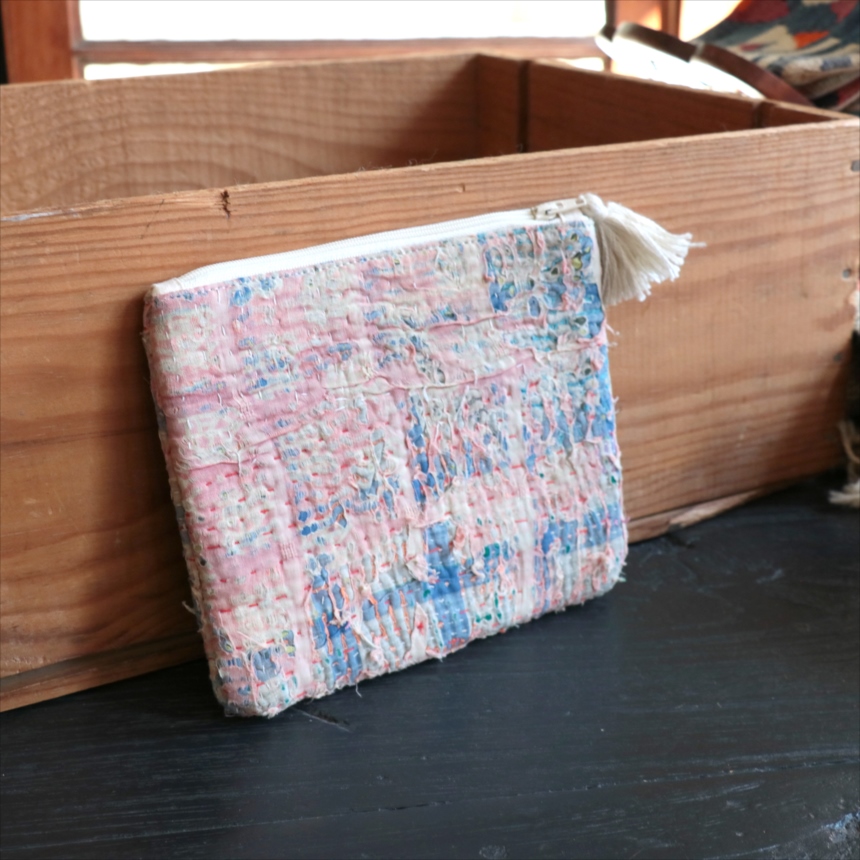 4. カンタ刺繍 ミニポーチ フラットポーチ16.5×19cm ヴィンテージカンタ 現品