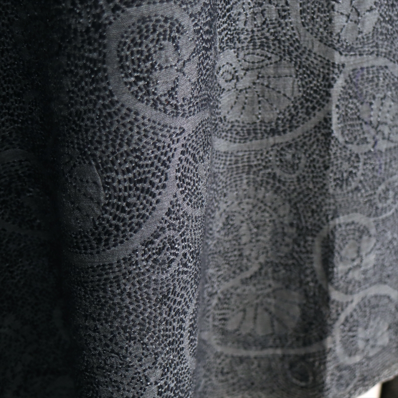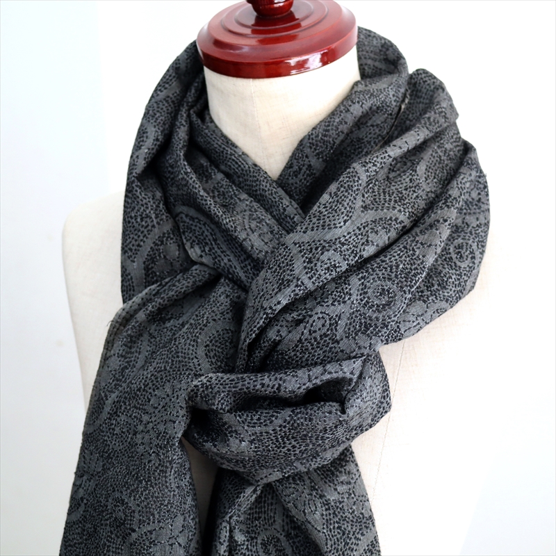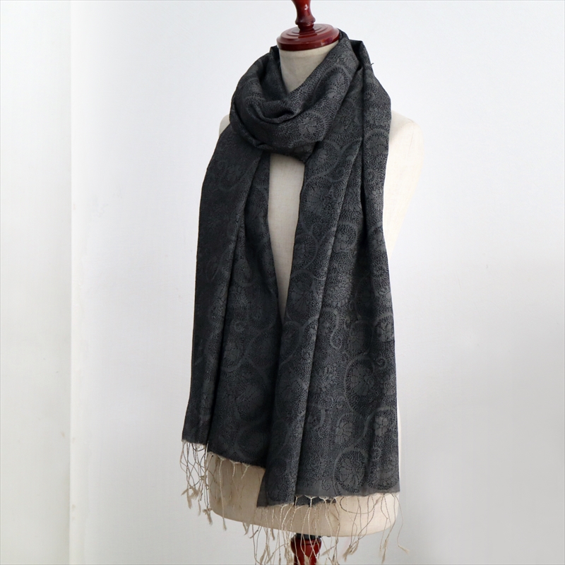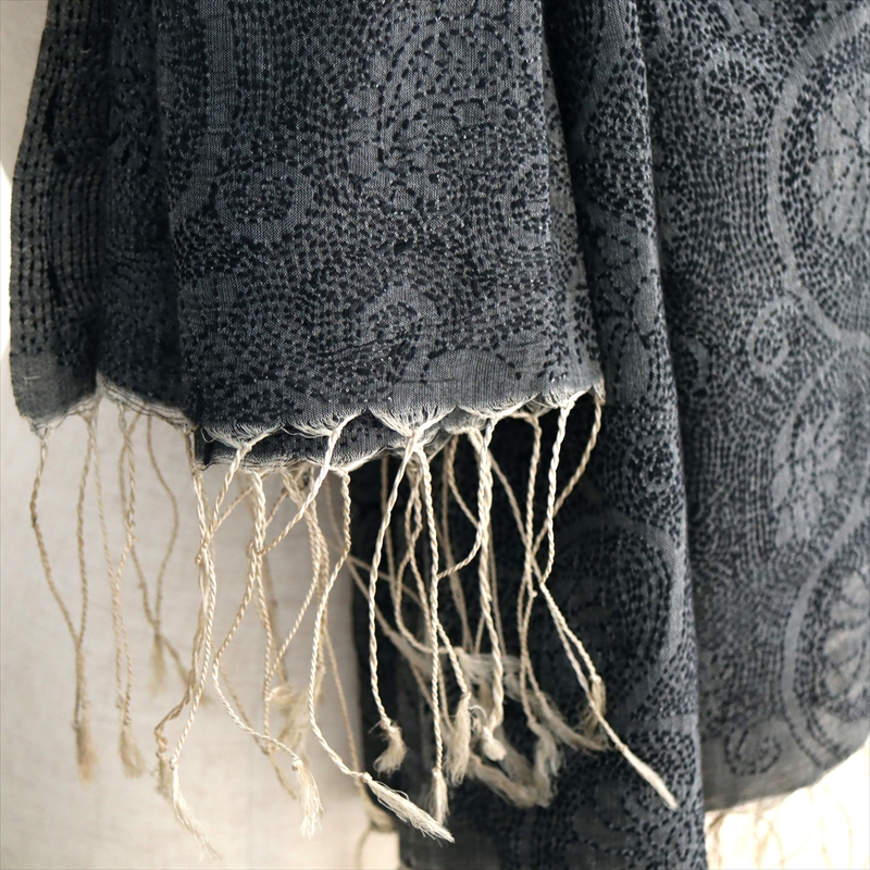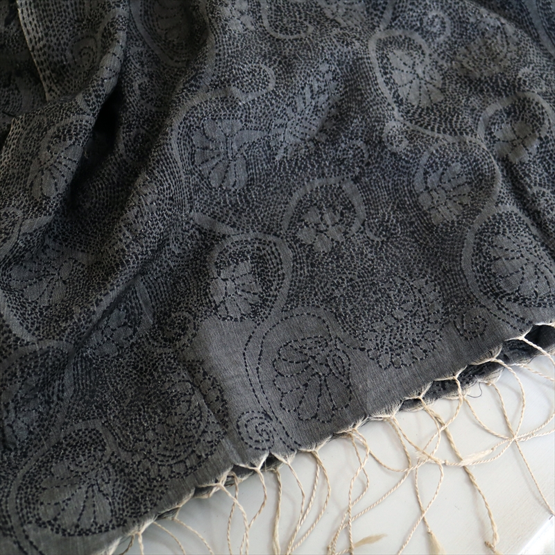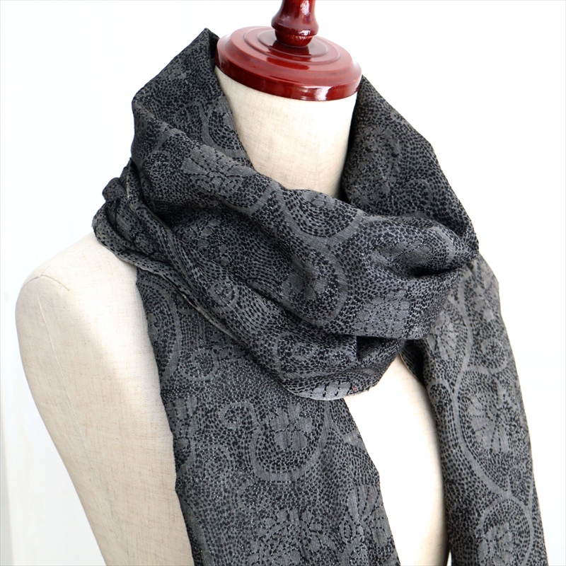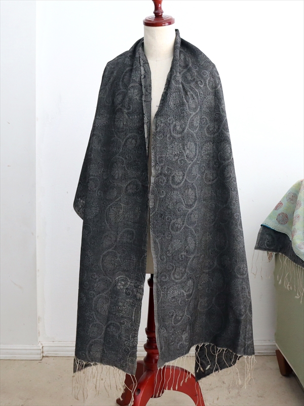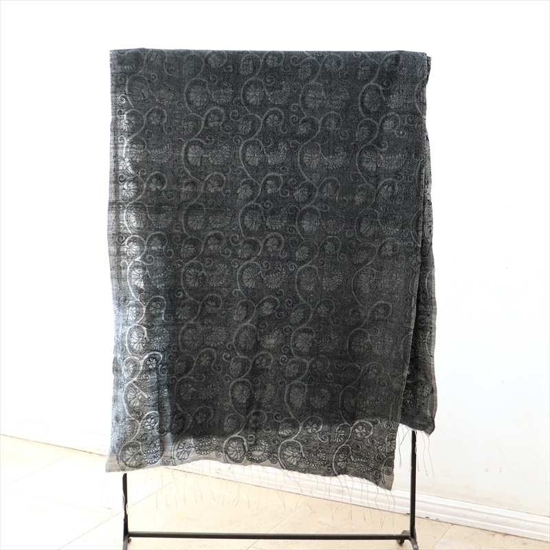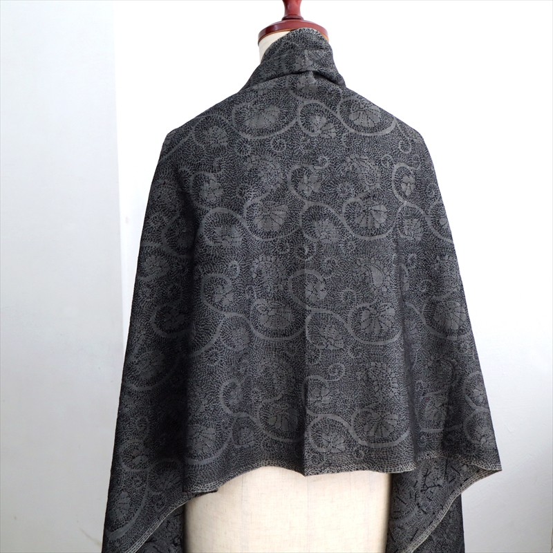 - シルクストール 大判ストール 手刺繍 214×71cm カンタ刺繍 ブラック
