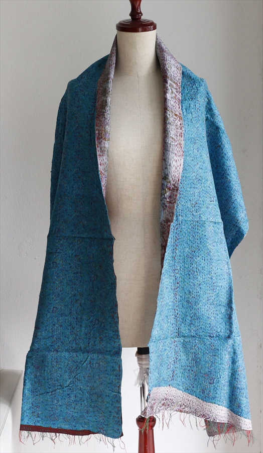 カンタ刺繍 シルクストール Kantha embroidery, India 196×50cm 【一点もの 現品】