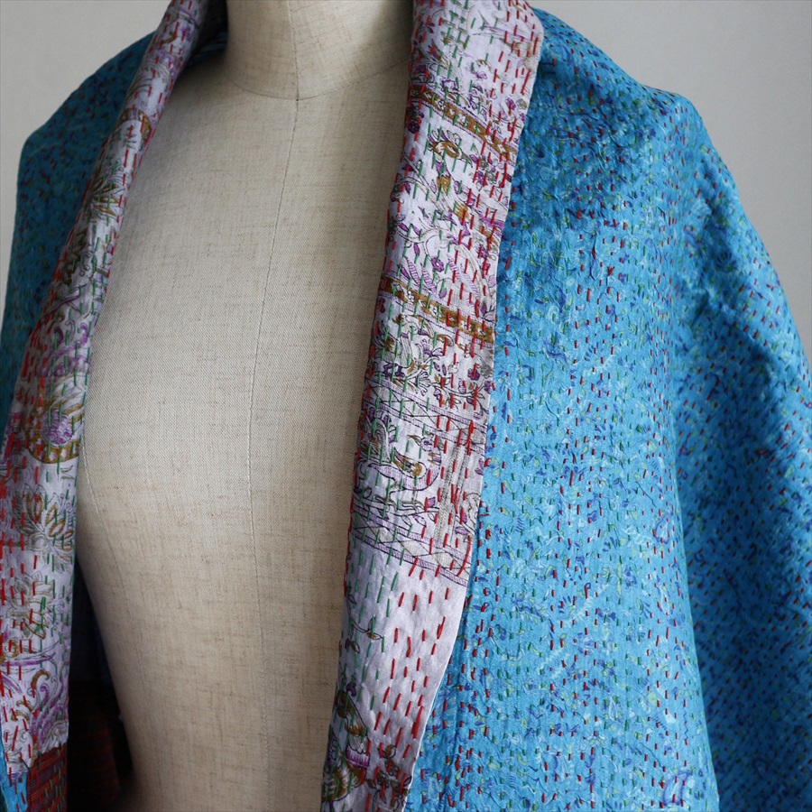 - カンタ刺繍 シルクストール Kantha embroidery, India 196×50cm 【一点もの 現品】