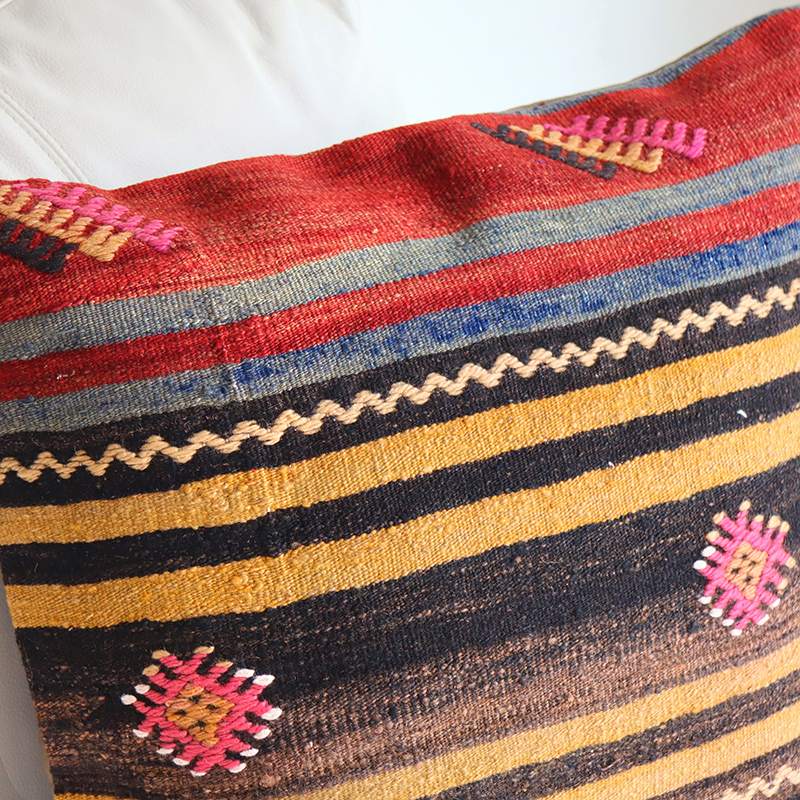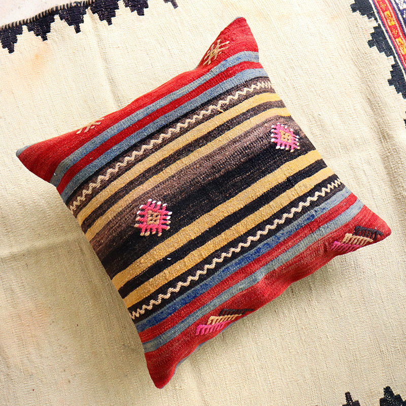 Key:Old Kilim, Kilim Cushion, Turkish Kilim, BOHO, Bohemian Decor, Vintage kilim, クッションカバー40cm, オールドキリム, トルコ, ヴィンテージキリム, トライバルラグ, ピロー, ボヘミアンスタイル, BO-HO, ウール100%, 手織り, 一点もの, ガラタバザール