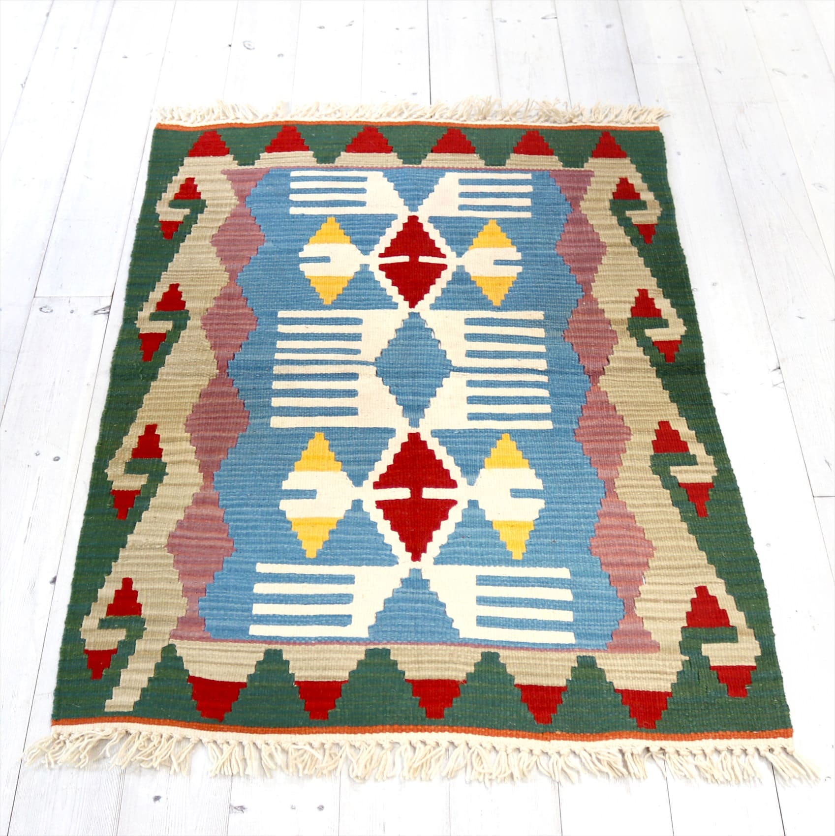トルコキリムらしい伝統的なスタイルで織られているカイセリ産のキリムです。カイセリ地方は、トルコの中央部、カッパドキアに近く、古い時代から多くの諸品が集まり、現在でも絨毯やキリム産業の中心となっています。工業製品にはないあたたかさがあり、我が家のキリムとして愛着の持てる一枚になってくれます。
