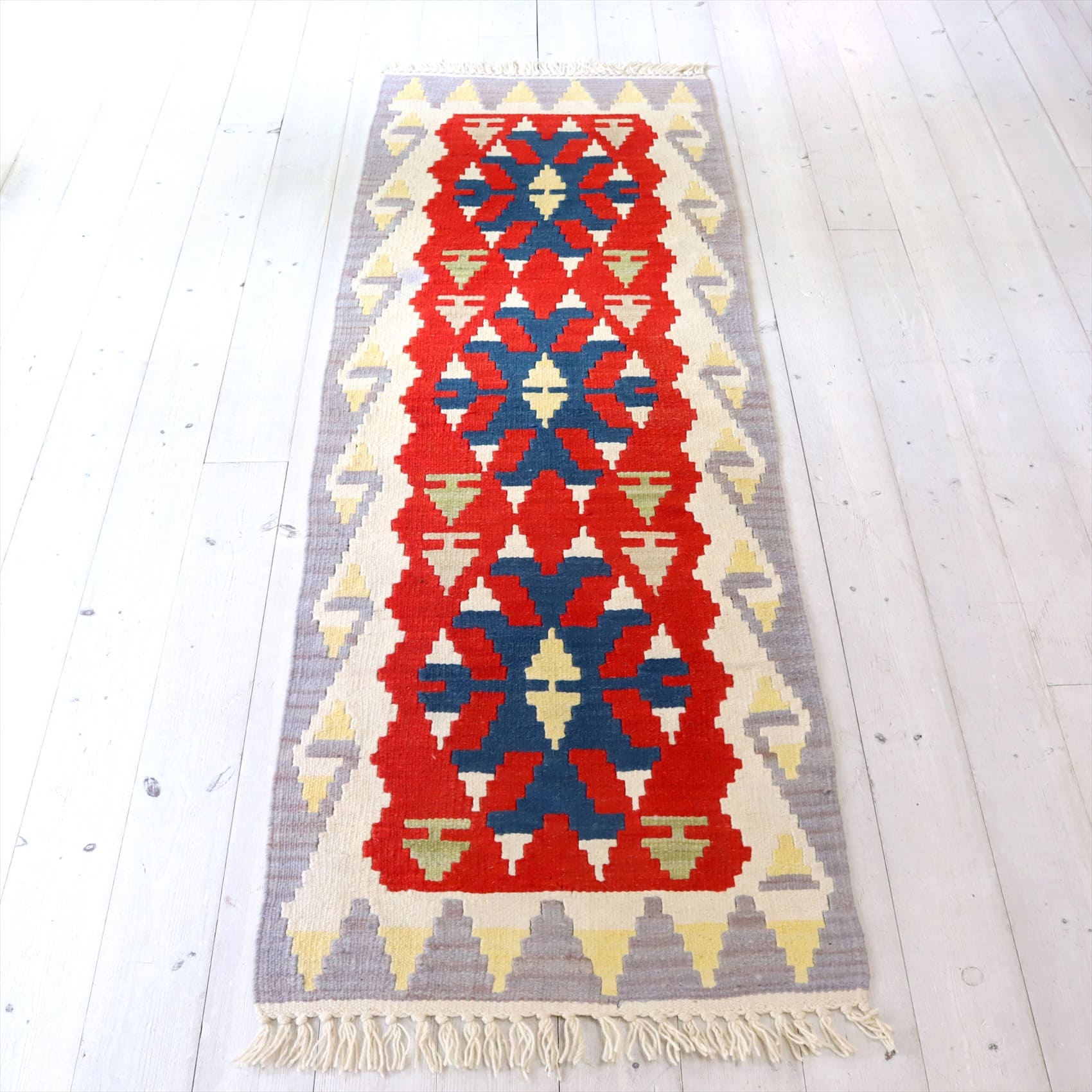 - トルコの手織りキリム カイセリ179×61cm ドラゴンのモチーフ