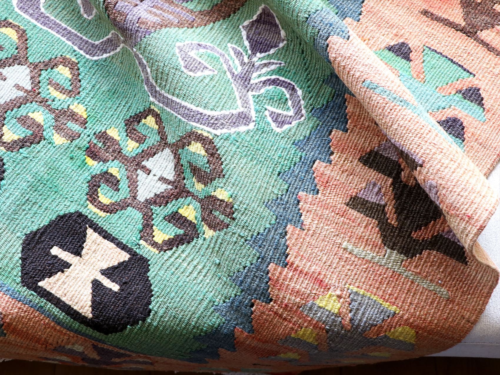 - オールドキリム ウシャク133×92cm 角のあるひし形とサソリ