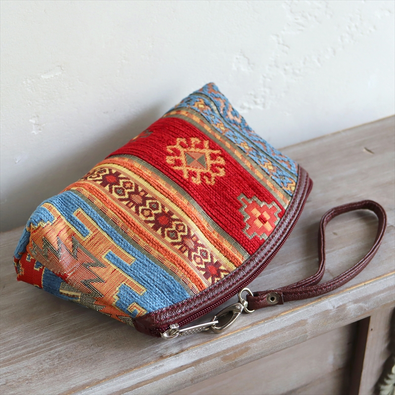 トルコの伝統柄を織り込んだ、エスニックなデザイン&カラーのポーチです。