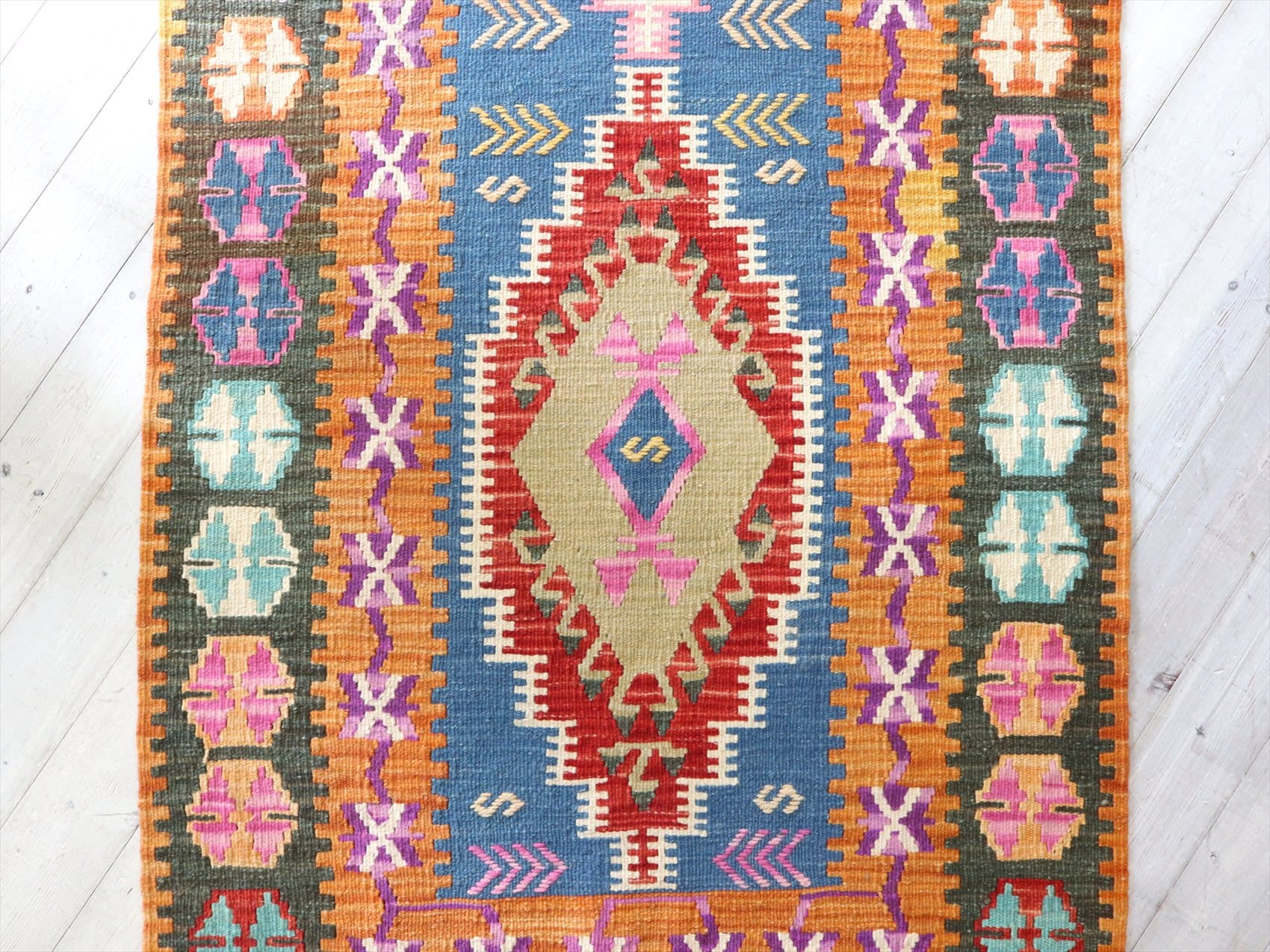 - 色にこだわるワンランク上のカイセリキリム ランナー304×100cm サソリのモチーフと階段状のメダリオン