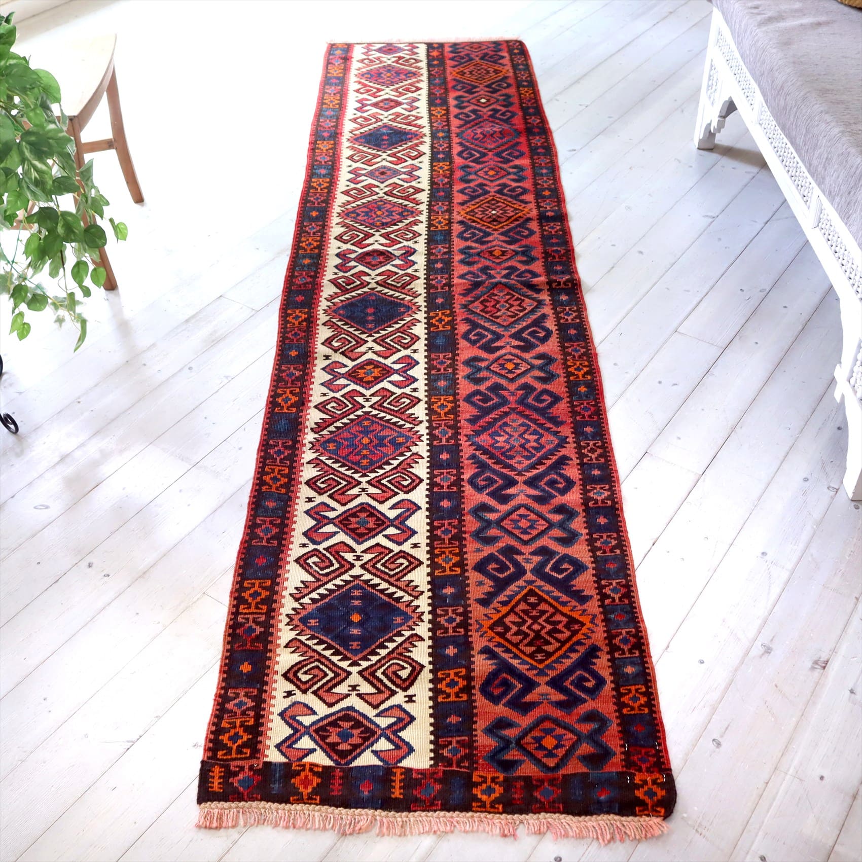 オールドキリム ハッキャリ269×66cm 連続するドラゴンのモチーフ