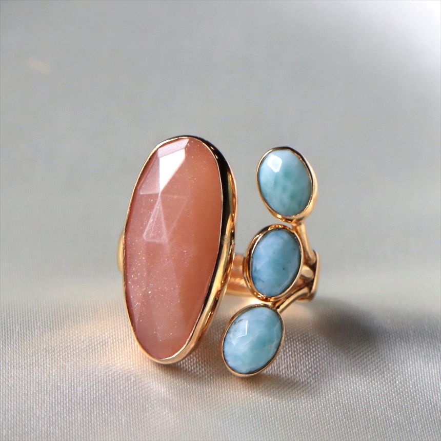 サンストーン ラリマー シルバーリング 18KGF 天然石 四つのストーン カラーストーン