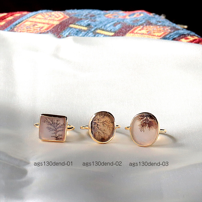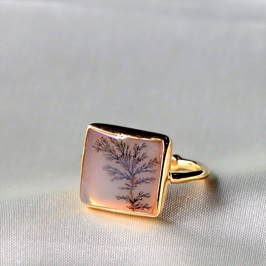- デンドライト シルバーリング スクエア 18KGF 天然石 トルコジュエリー カラーストーン
