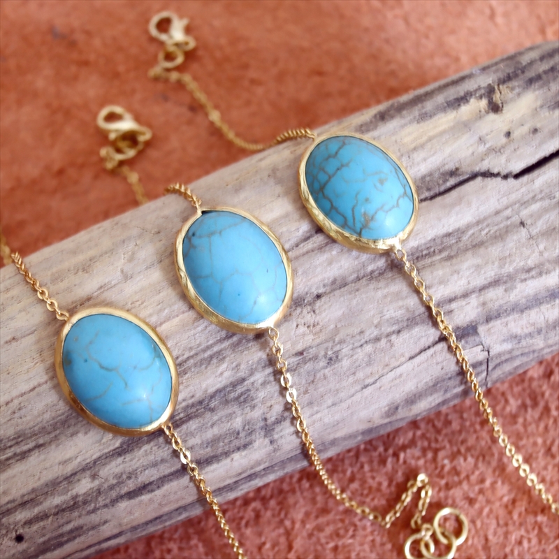 アルサメイア ターコイズひと粒ブレスレット 22KGP チェーンブレスレット 天然石 トルコジュエリー