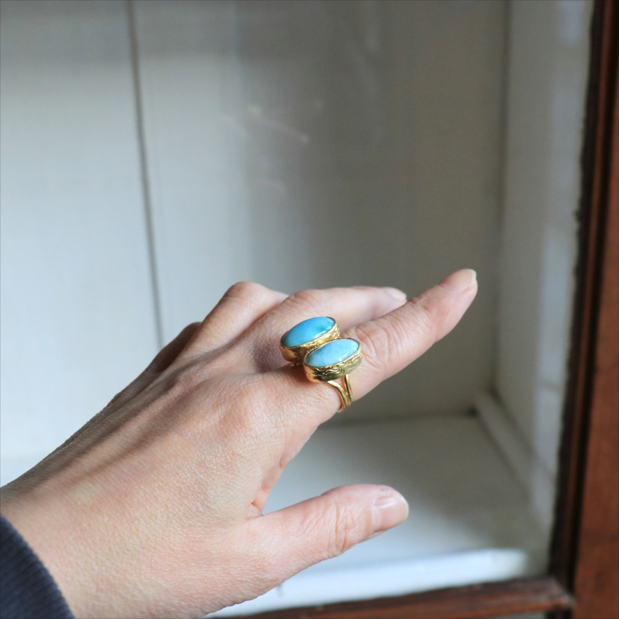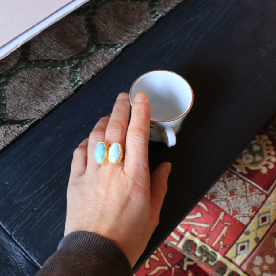 ラリマーダブルリング オーバル アルサメイア トルコジュエリー カラーストーン