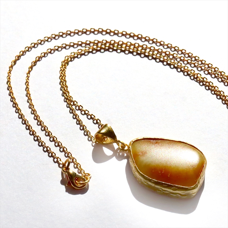 琥珀 アンバーラフカット ネックレス 22KGP アルサメイア トルコジュエリー