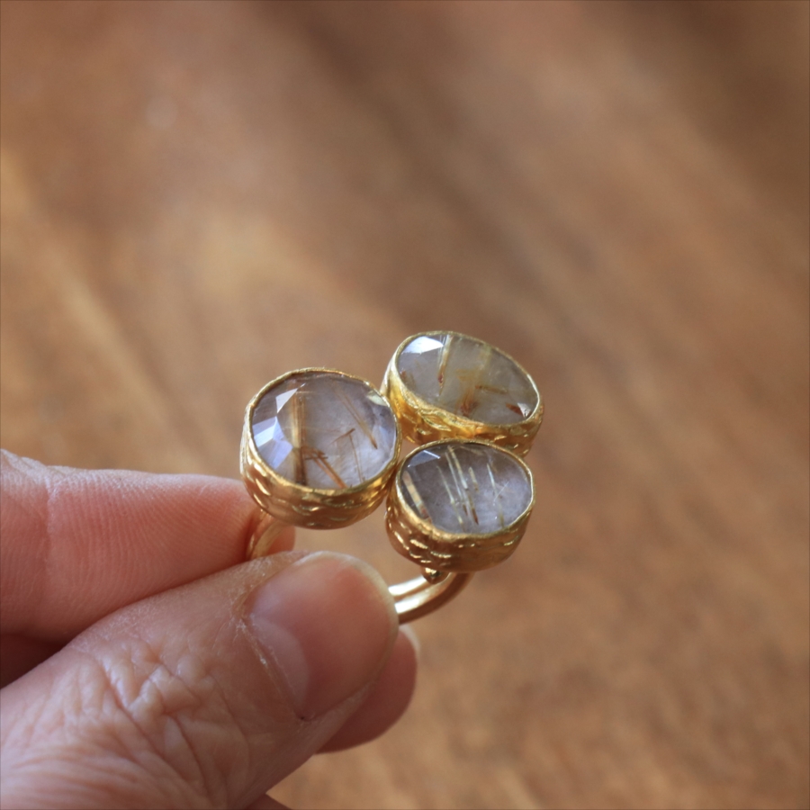 ルチルクォーツ リング 3ストーン アルサメイア トルコジュエリー 3つの石