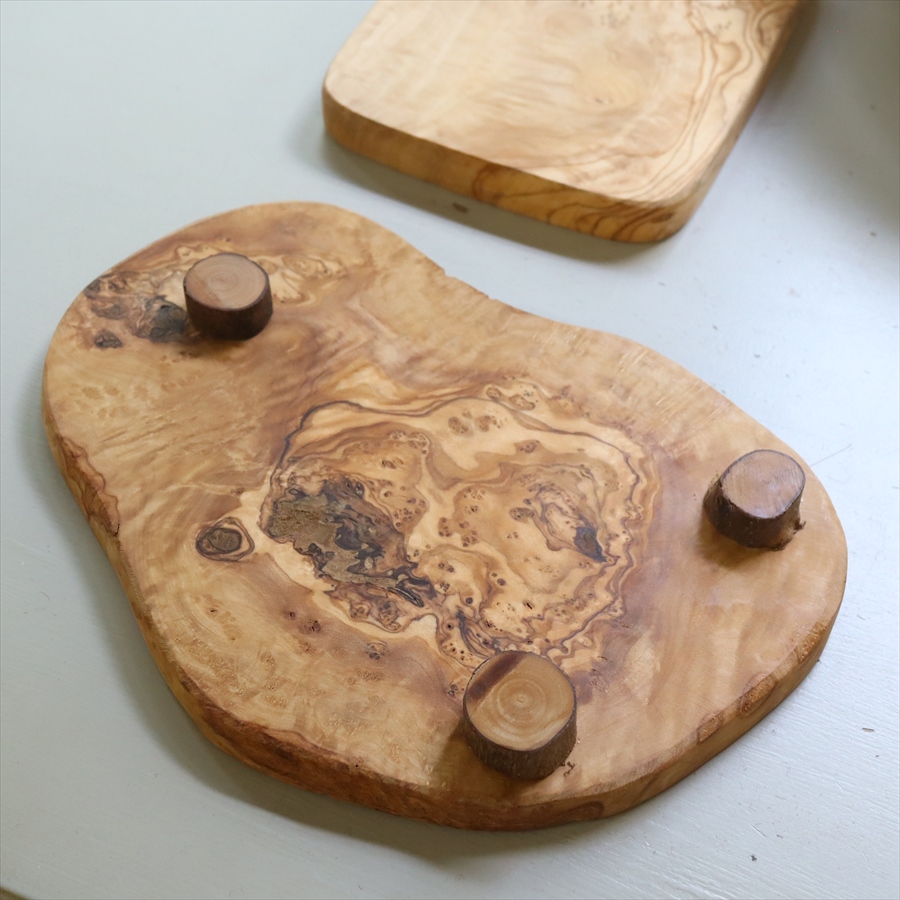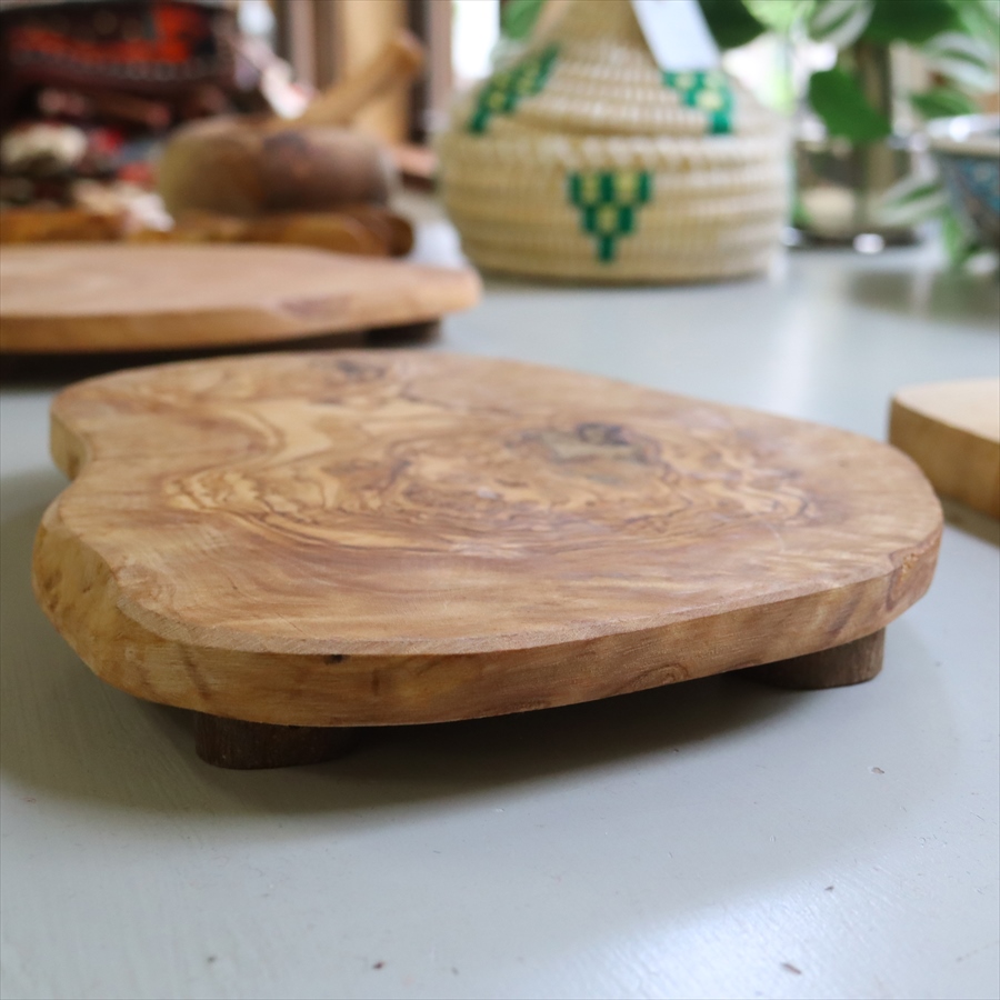 オリーブ木 脚付プレート NATURAL 【現品】チュニジア産 天然木