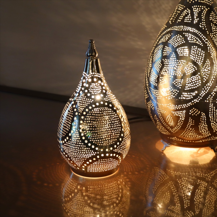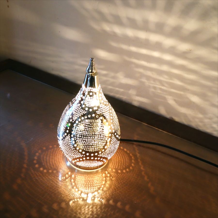 Key:モロッコランプ BOHO モロッコランタン メタルシェード ボヘミアンスタイル シルバー メタルランプ インダストリアル テーブルランプ テーブルライト 間接照明 室内照明 店舗照明 Morroco Lamp Egyptian lamp Egypt craftmanship