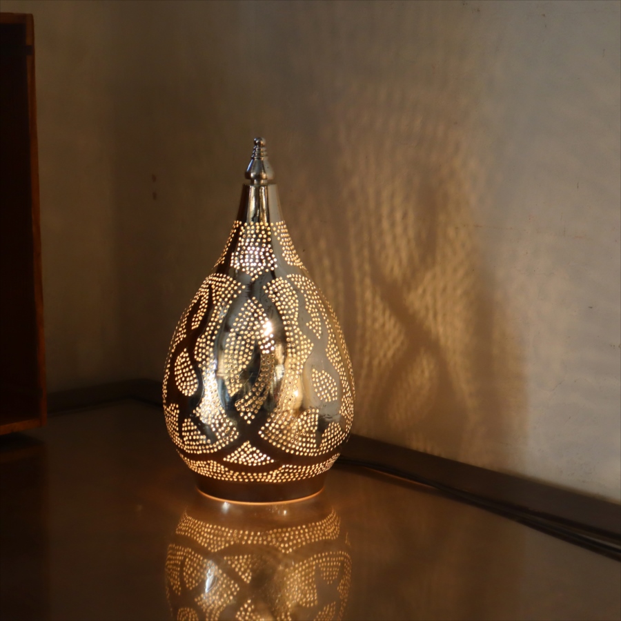 Key:モロッコランプ BOHO モロッコランタン メタルシェード ボヘミアンスタイル シルバー メタルランプ インダストリアル テーブルランプ テーブルライト 間接照明 室内照明 店舗照明 Morroco Lamp Egyptian lamp Egypt craftmanship