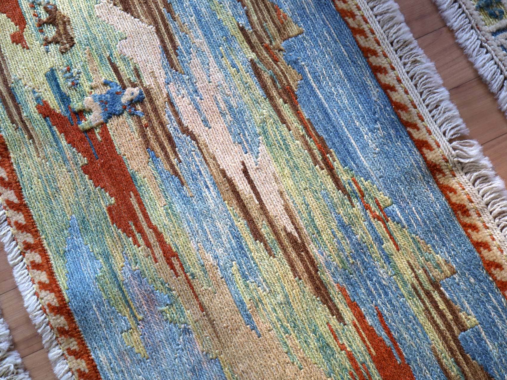 ギャッベスマックキリム 遊牧民の織る風景のラグ49×117cm 山麓と草原と湖