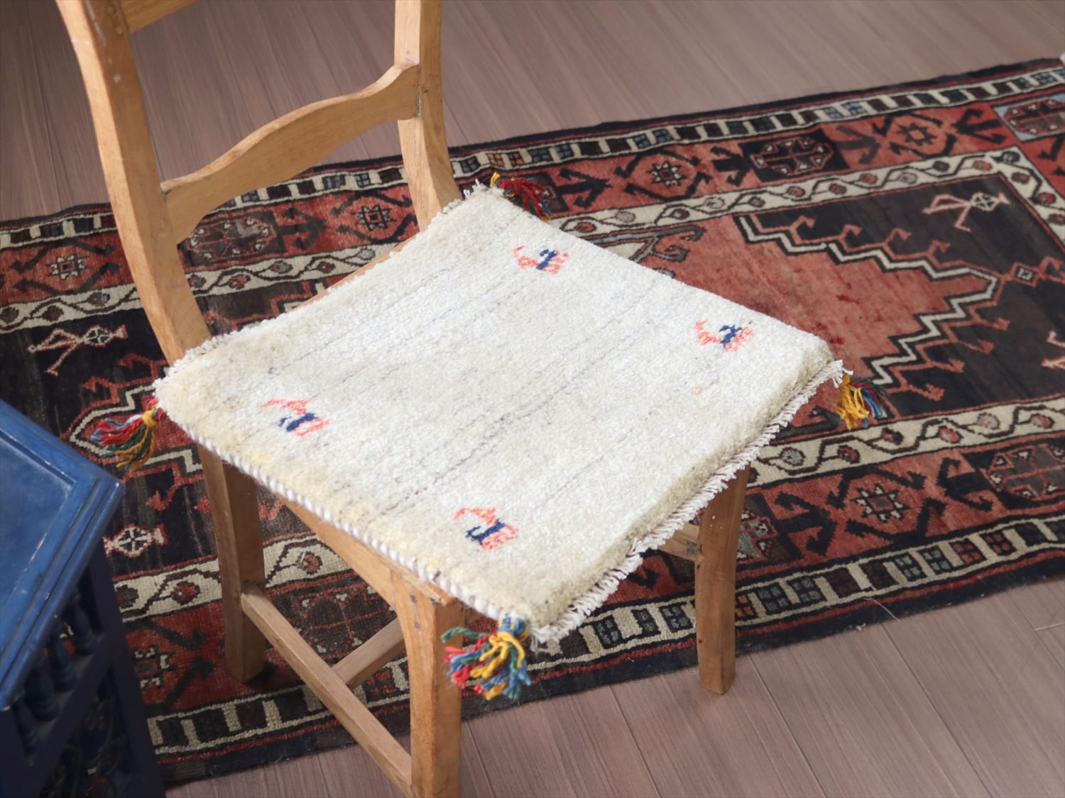 ギャッベ Gabbeh 座布団サイズギャベ41×42cm ナチュラルアイボリー イラン製手織り
