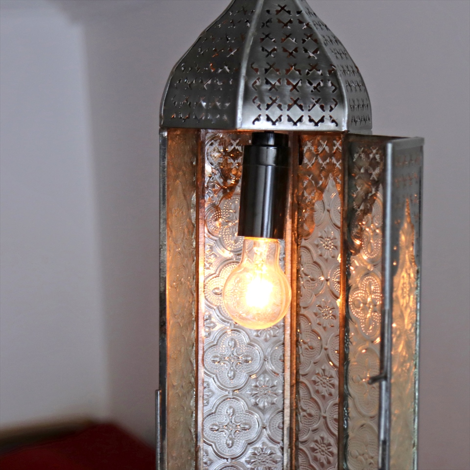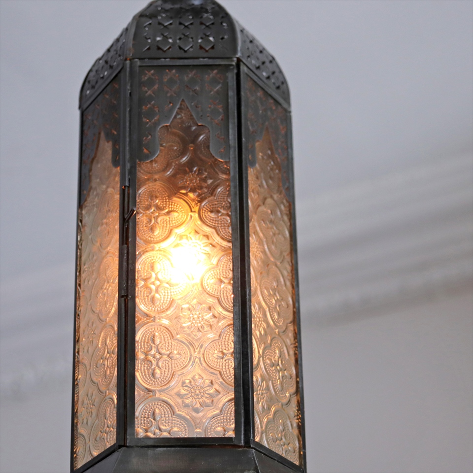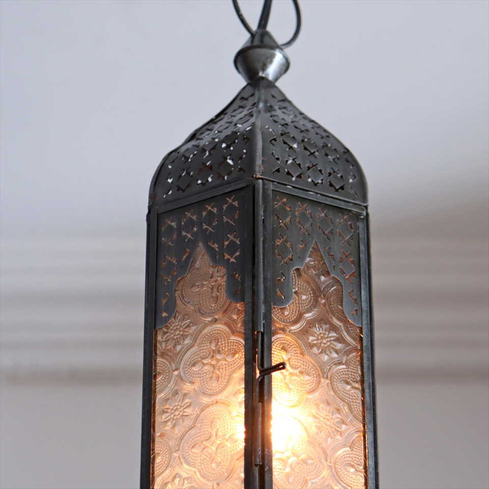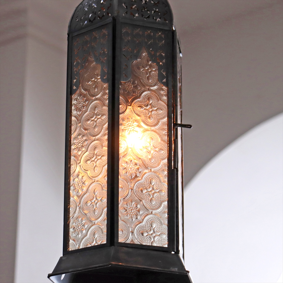 - ガラスペンダントランプ モロッコランタン 全長73cm 6面のレリーフガラス Morocco Lantern Candle holder