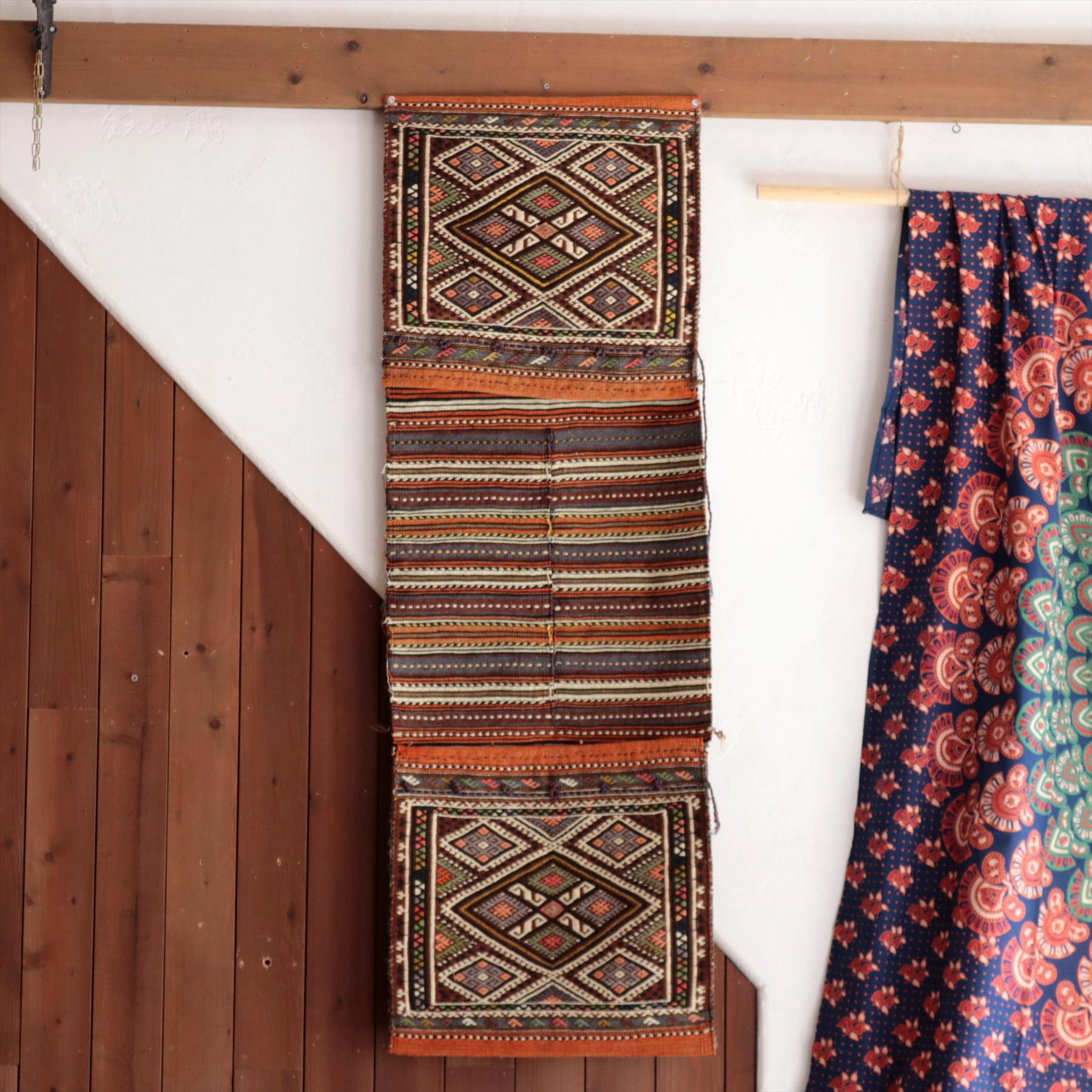 オールドキリム サドルバッグ(ヘイべ)122×41cm ジジムの幾何学モチーフ ボーダー