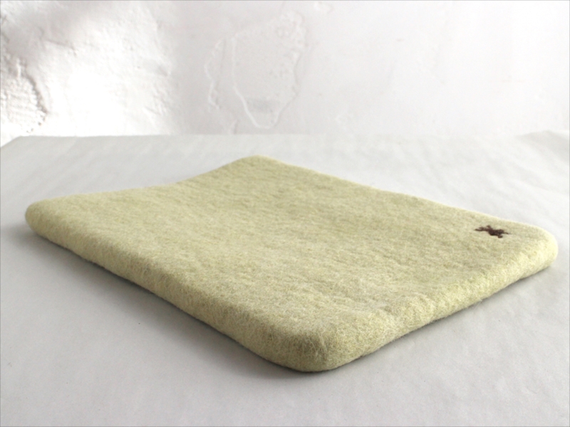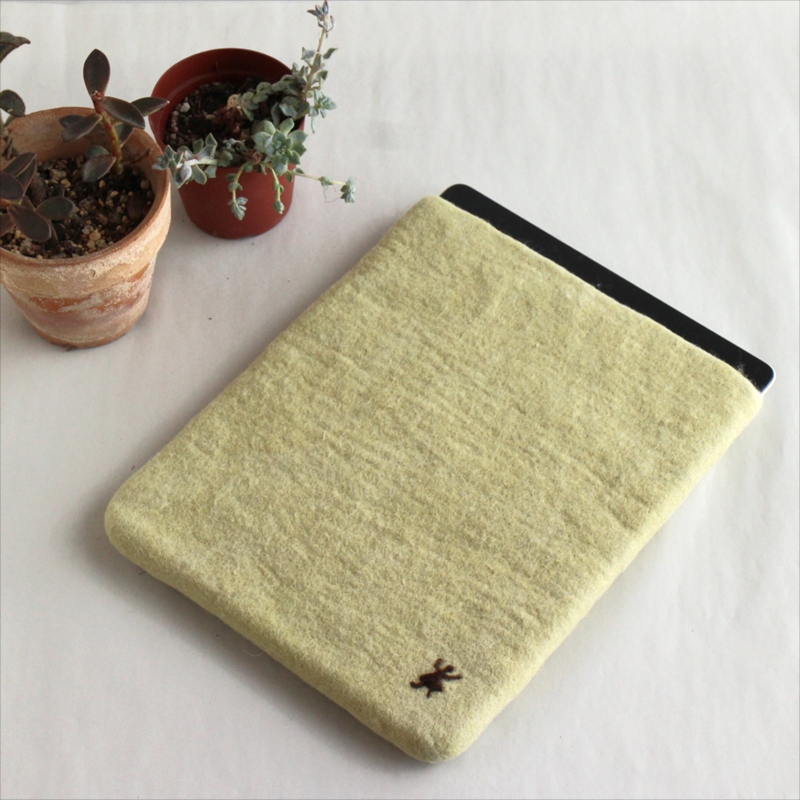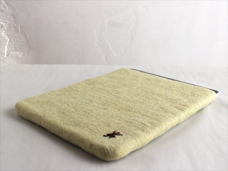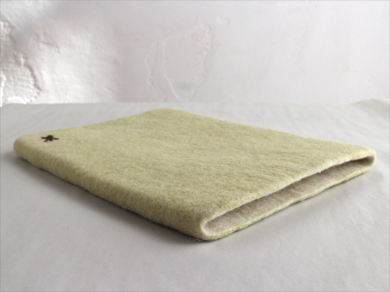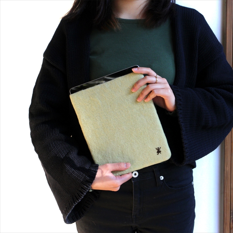 キルギスのフェルト・タブレットケース・Mサイズ Kyrgyzstan Felt Tablet case Natural dyeing草木染め・エスパルセットで染めたグリーン