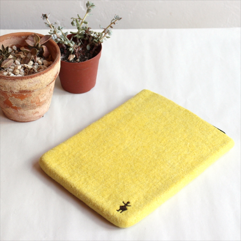 - キルギスのフェルト・タブレットケース・Sサイズ Kyrgyzstan Felt Tablet case Natural dyeing草木染め・アプリコットで染めたイエロー