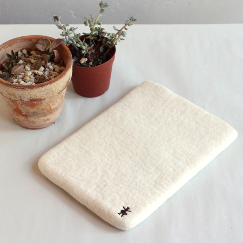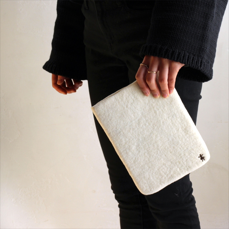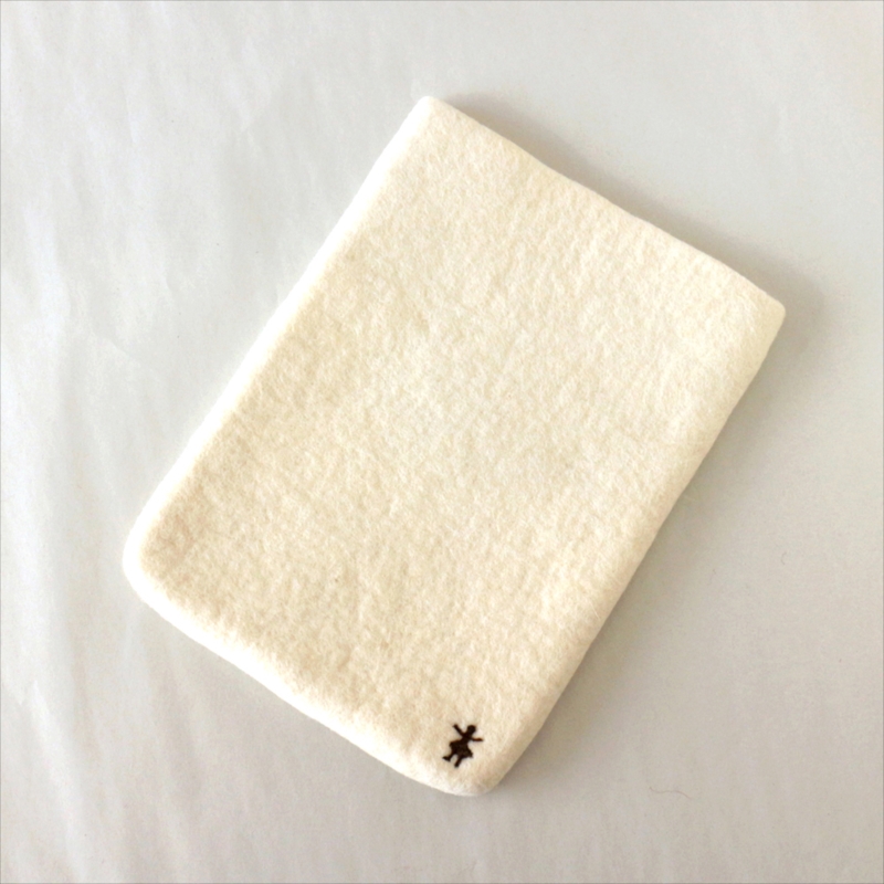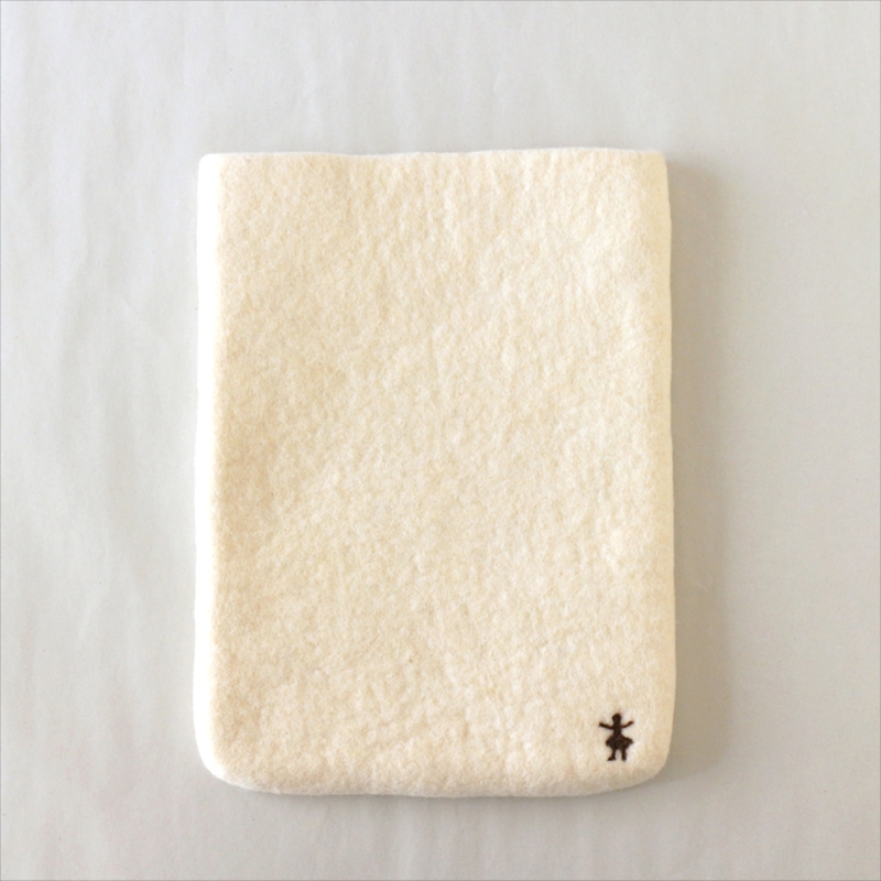 - キルギスのフェルト・タブレットケース・Sサイズ Kyrgyzstan Felt Tablet case Natural dyeing ナチュラルカラー・ホワイト