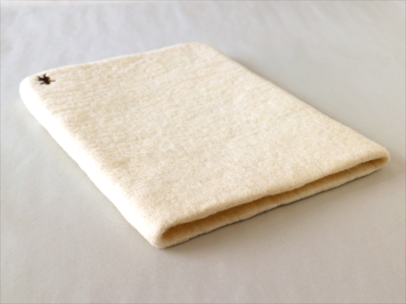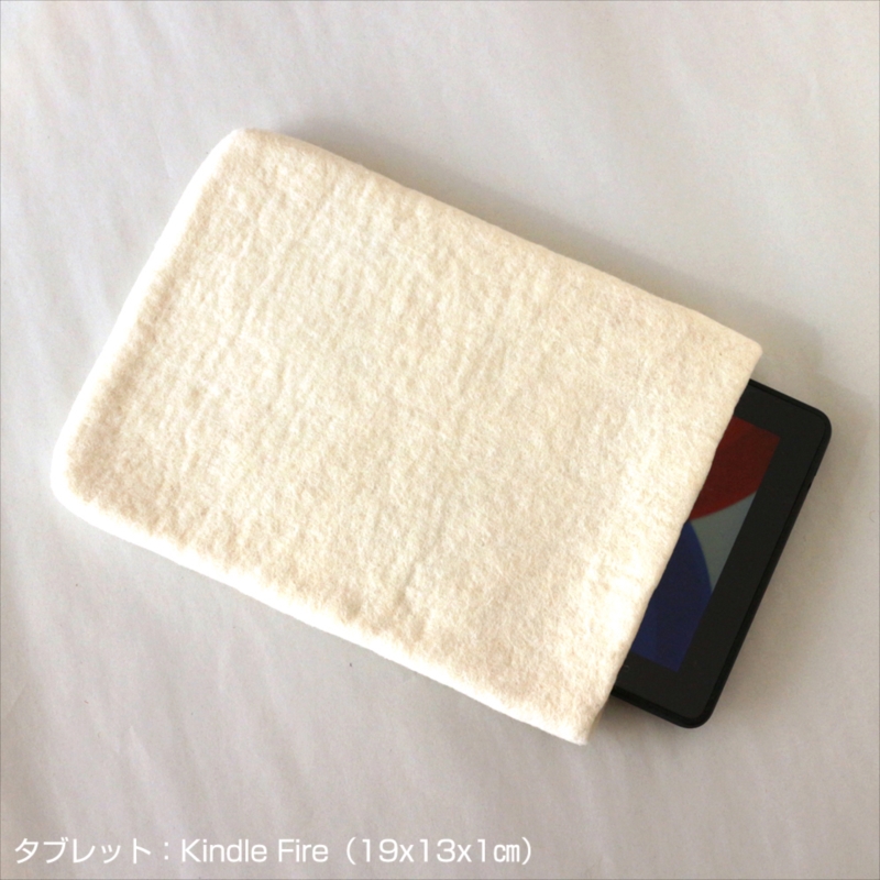 キルギスのフェルト・タブレットケース・Sサイズ Kyrgyzstan Felt Tablet case Natural dyeing ナチュラルカラー・ホワイト