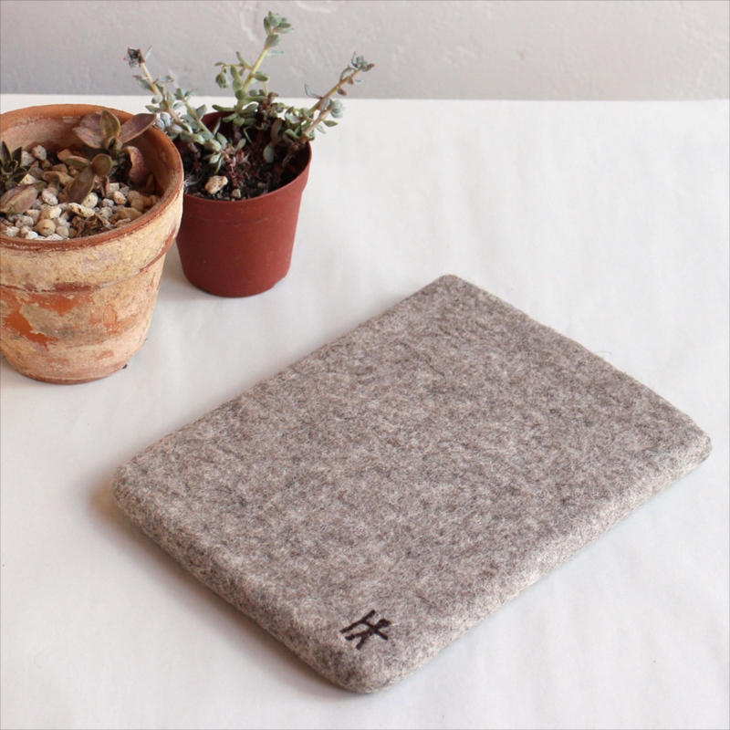- キルギスのフェルト・タブレットケース・Sサイズ Kyrgyzstan Felt Tablet case Natural dyeing ナチュラルカラー