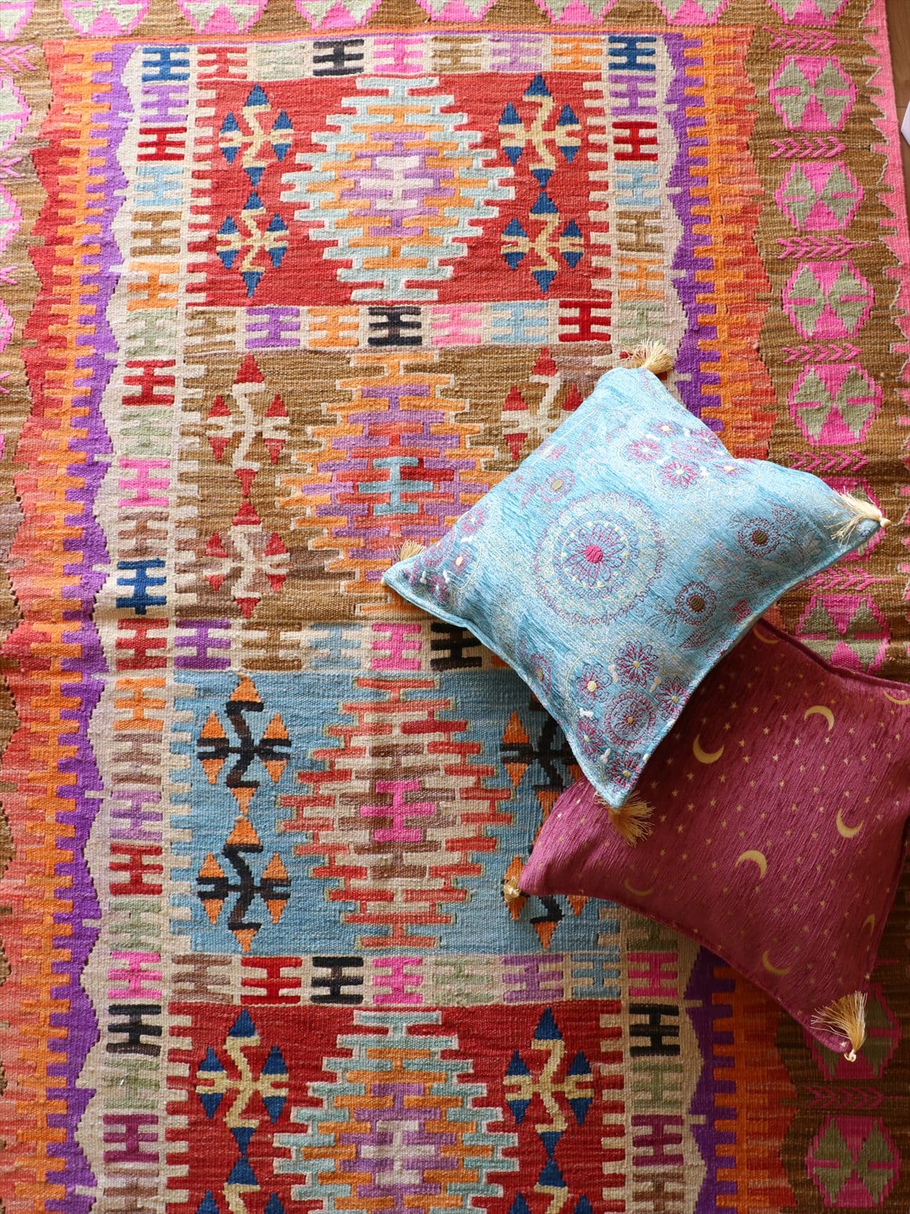- 手織りキリム トルコ カイセリ産184×131cm 明るいパステルカラー セッヂャーデ