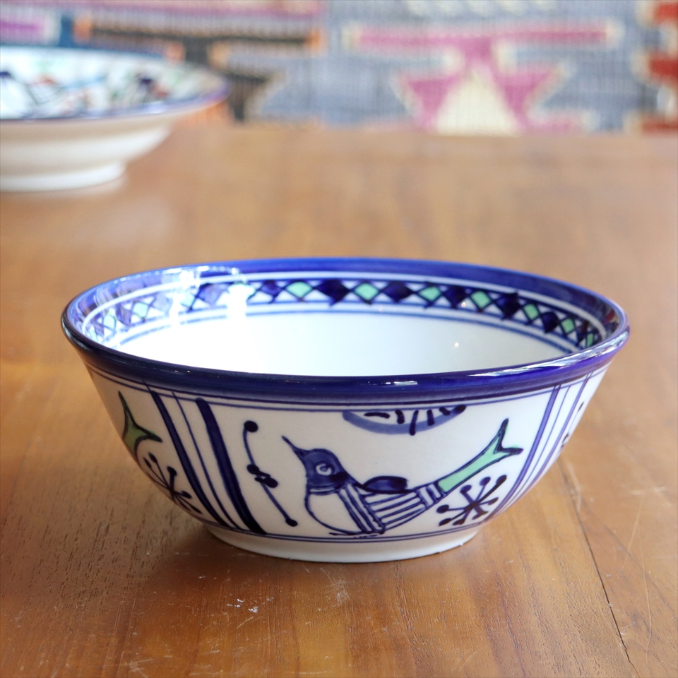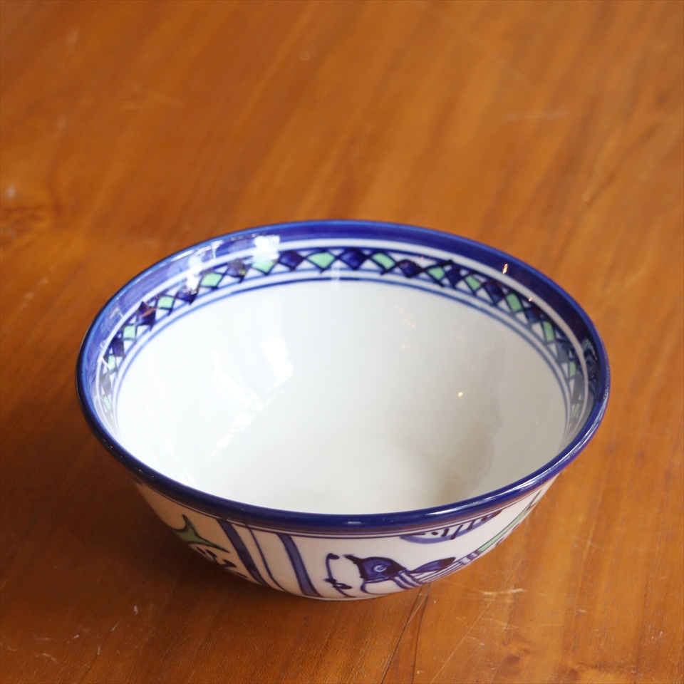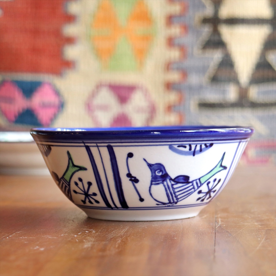 - ボウル ブルーバード ヤズド(イラン) 製 直径15cm 陶器 食器 電子レンジ・食洗器対応