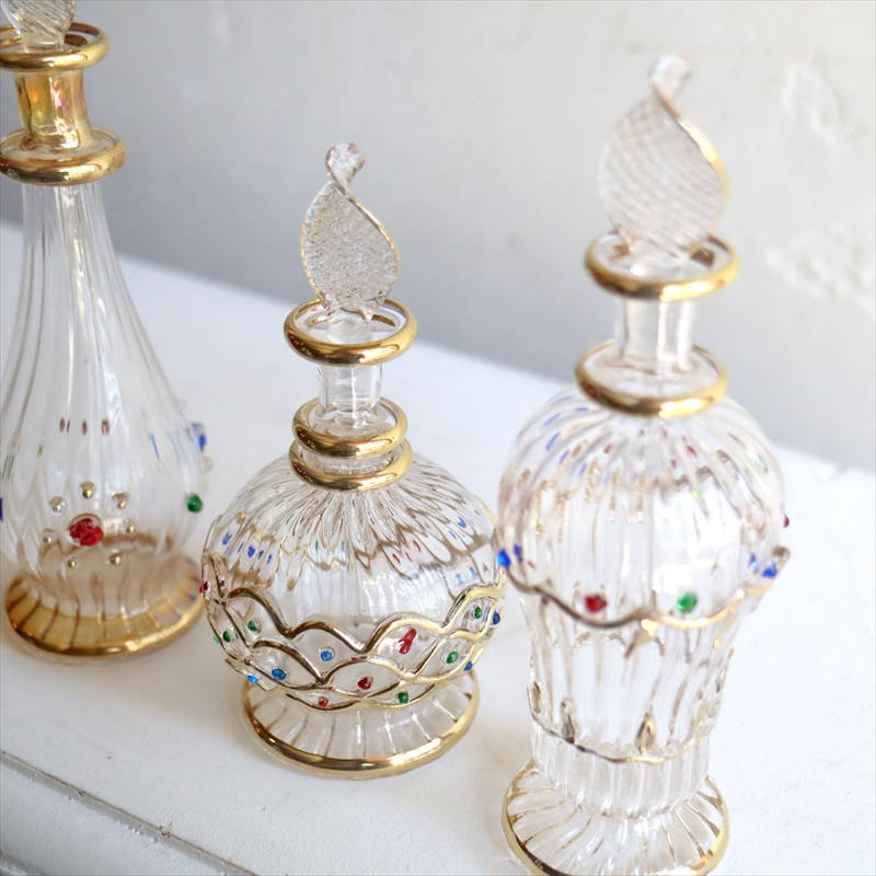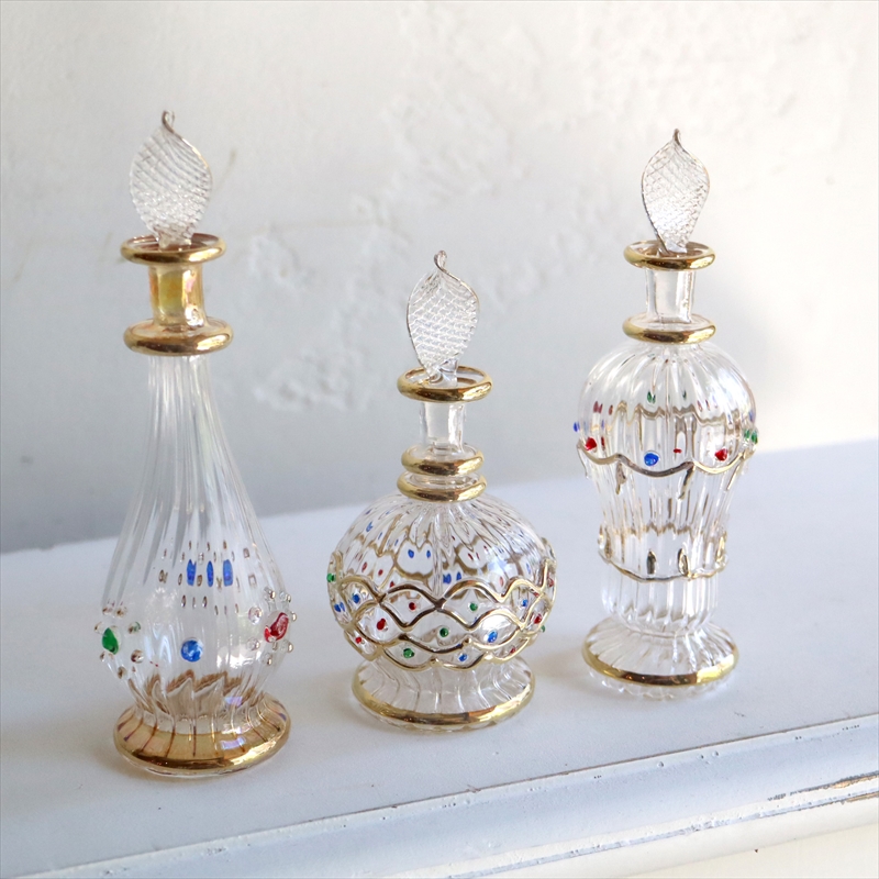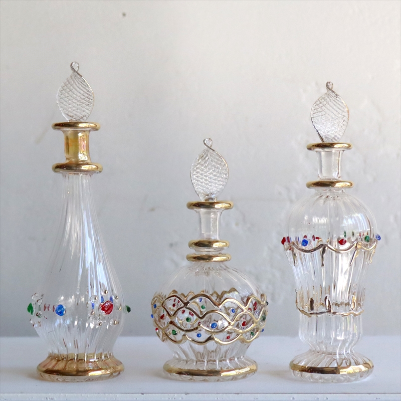 エジプト ガラス香水瓶 3本セット クリア エジプト製 Egyptian Purfume Bottle