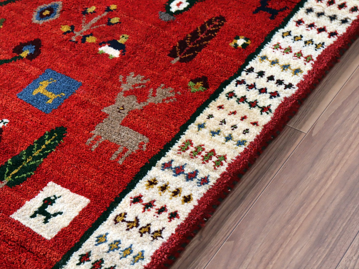 ギャッベ イランの手織りラグ192×149cm レッド 生命の樹と様々なモチーフ