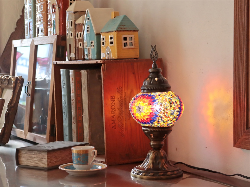 - トルコランプ モザイクテーブルランプ 直径13cm 全高32cm カラフル E17/15W