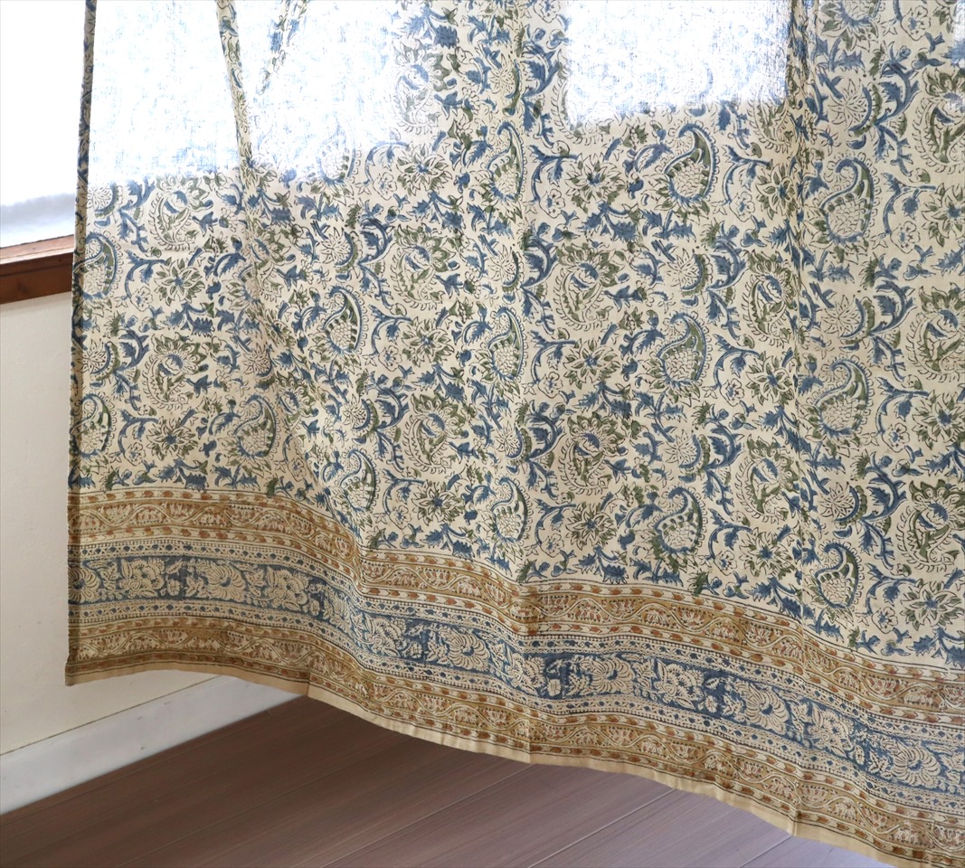 カラムカーリ インド更紗 ドアカーテン 173x105cm 生成色 ボタニカル柄
